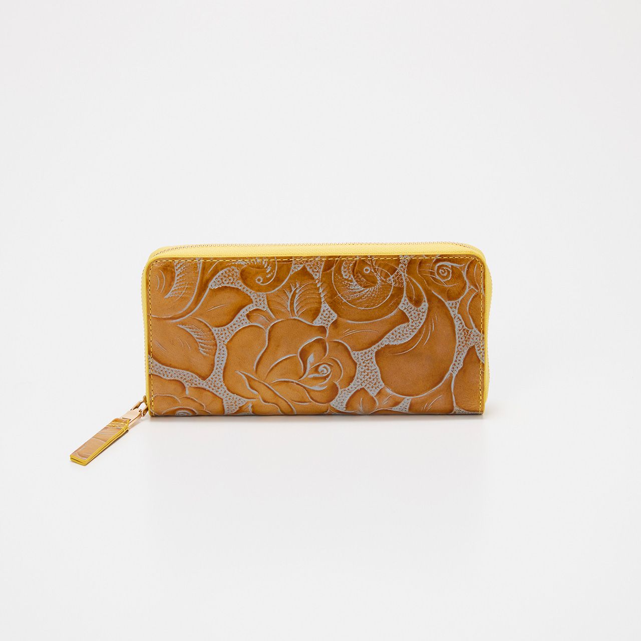 バングラデシュのフルタンニン染めレザーに職人がひとつひとつ型押しし、サンドペーパーで丁寧にこすってツヤを出したクラフト感あふれるデザイン。口が大きく開くラウンドファスナータイプで、中央にはファスナータイプのコインポケット、両サイドにはマチ付きのカードポケットが充実。小銭やカードの出し入れがしやすく、紙幣や領収書などを分けて収納できるので使い勝手抜群です。グリーンとイエローの2色をラインナップしています。【TREASURE TOPKAPI / トレジャー トプカピ】Sense is a treasure ーその 」感性」が宝物ー大人の女性の気分を上げる、品が良く楽しいバッグブランドです。Unique senseをコンセプトに、 TREASUREは 」独創的」 で心くすぐるアイテムを提供します。※商品画像はサンプルのため、色味やサイズ、仕様等に変更が生じる場合がございますので、予めご了承ください