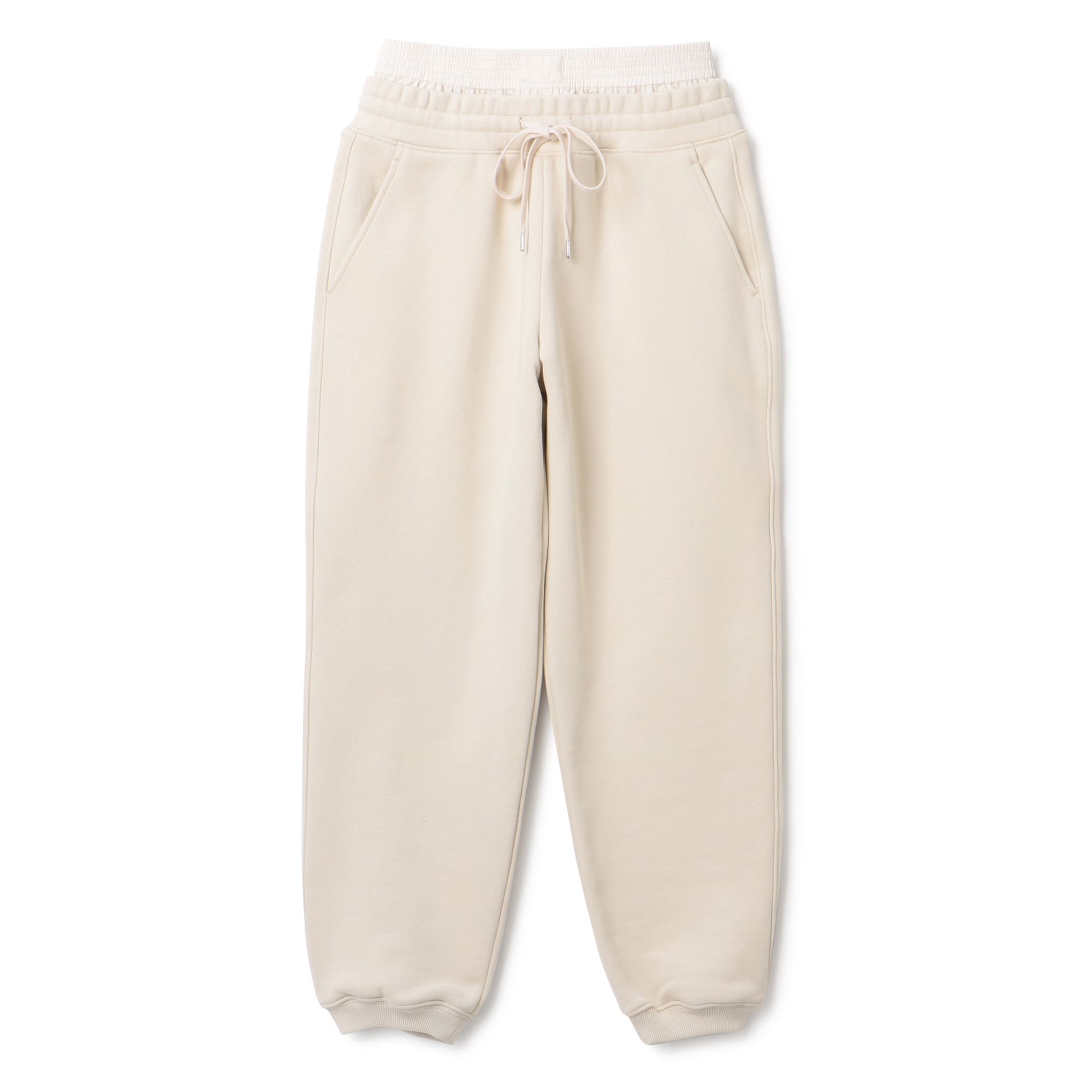 目の詰まったコンパクトな質感のフレンチ テリー素材のボクサーウェストバンドジョガーパンツ。きれいめトップスとのコーディネートで抜け感を。リラックスフィット、クロップドレッグ。