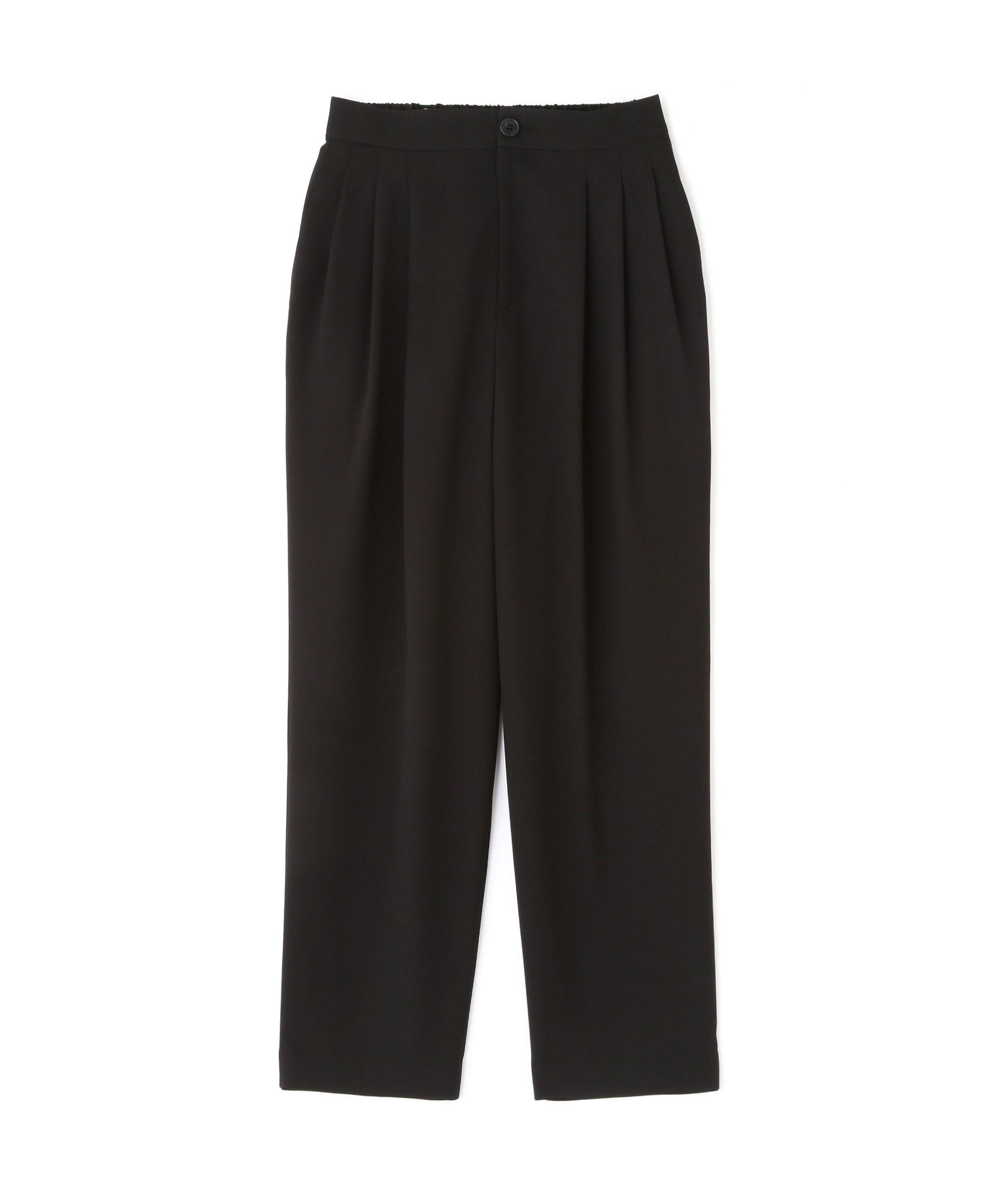 落ち感のある薄いポンチのリラックスパンツセンターシームにピンタックを入れて立体感を持たせ、イージー過ぎない仕上がりにしています。カットソー素材のリラックス感と、センタープレス入りパンツの様なきちんと感を併せ持った非常に汎用性の高い便利なアイテムです。パウダー調の非常にソフトな風合いが特徴な軽くしなやかなジャージ素材で仕立てました。※この商品は、ブラック / エクリュ / グリーン の3色展開となります。【商品特性】透け感:なし裏地:なし 伸縮性:あり 生地の厚さ:普通 フィット感:普通おすすめ着用期間:通年おすすめ着用シーン:休日透け感/なし|裏地/なし|光沢/なし|生地の厚さ/普通|伸縮性/あり|シルエット/スタンダード