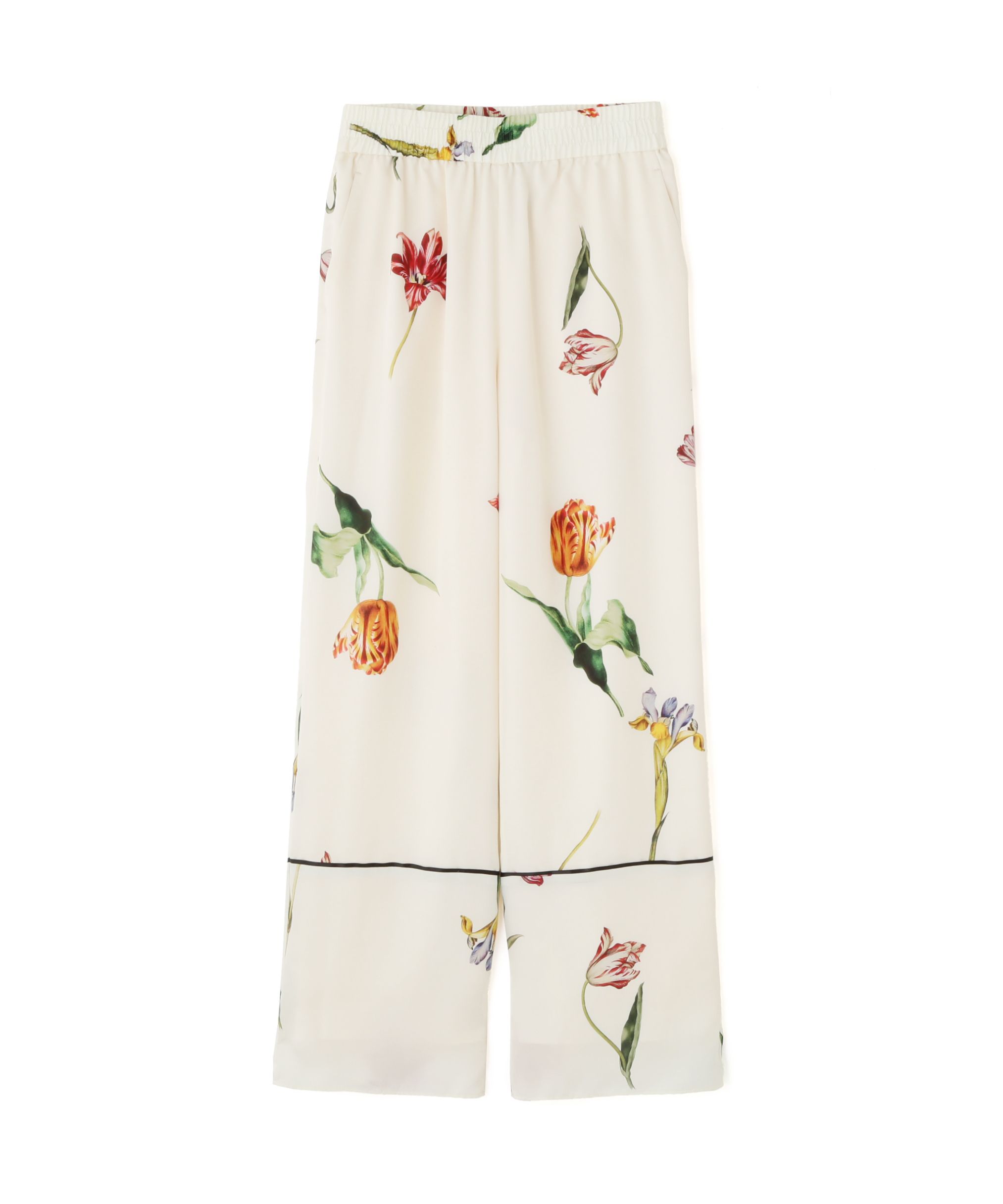 ピクトリカルブックプリントパンツウエストがALLゴムのシンプルなギャザーストレートパンツです。図鑑から抜き取ったような植物柄を組み合わせたオリジナルプリント。裾とベルトの黒のグログランパイピングが映える1着です。ウエストから垂れるベルトはそのまま垂らして着用します。同素材ジャケット(品番:531-5250813)、ブラウス(品番:531-5210814)とのセットアップ着用も可能です。写真のような植物モチーフをプリントした、軽く光沢感のある、しなやかなサテン素材で仕立てました。※この商品は、エクリュのみ の1色展開となります。【商品特性】透け感:ややあり裏地:あり伸縮性:なし 生地の厚さ:薄め フィット感:普通おすすめ着用期間:春夏秋おすすめ着用シーン:お出かけ透け感/ややあり|裏地/あり|光沢/ややあり|生地の厚さ/普通|伸縮性/なし|シルエット/スタンダード