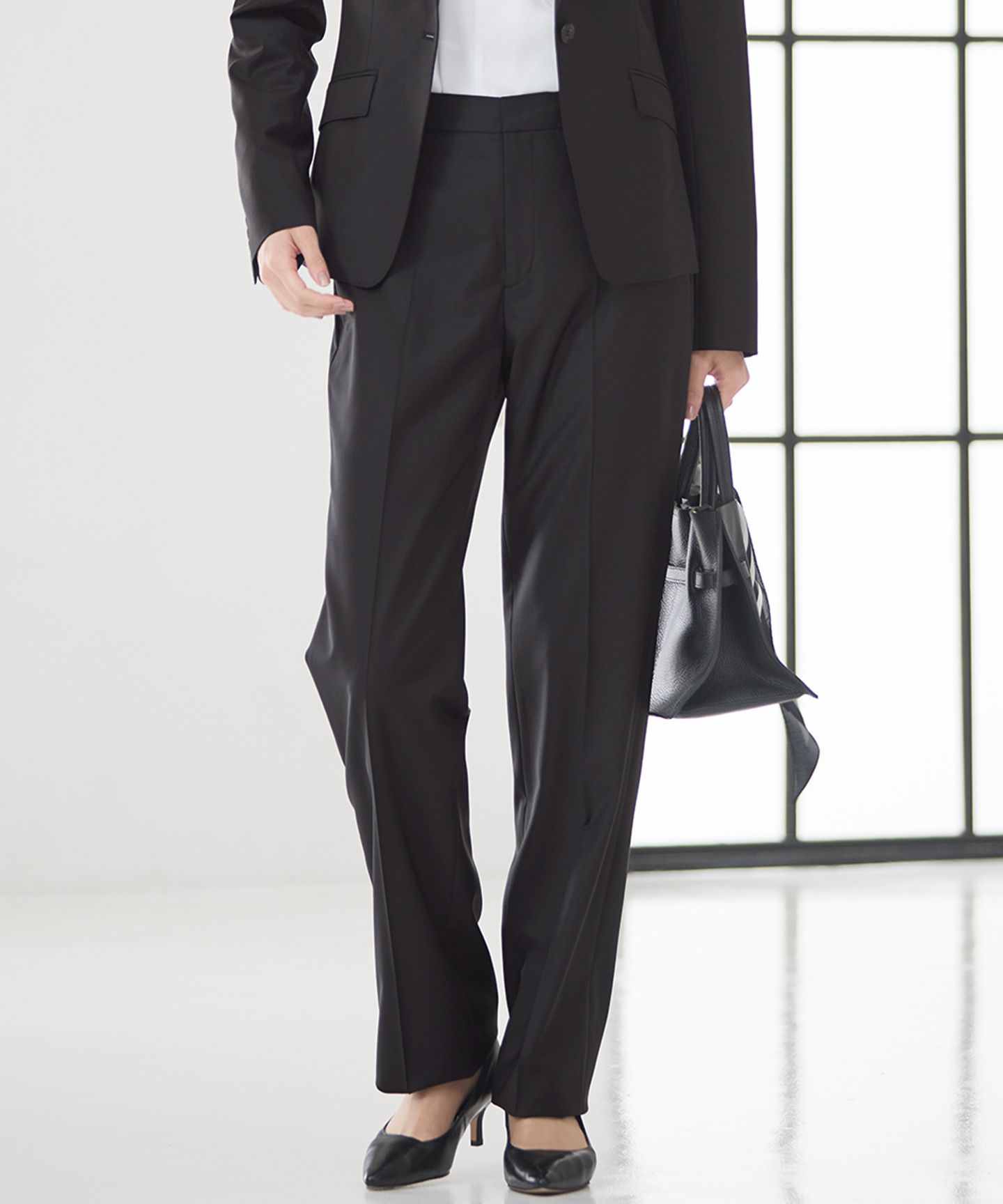 2025 Pre Spring上品な艶感が素材の上質さを際立たせるスーツパンツ■デザインフルレングスパンツ。ワイド過ぎないきれいめシルエットで、センタープレスが足を長く綺麗に魅せてくれます。さらに裏地のない1枚仕立てで軽やかな着心地に。同素材のジャケットと、セットアップスタイルとして通勤スタイルに活躍してくれる1枚です。カラーはベーシックな無地のブラック(#005)、上品な印象のネイビーストライプ(#175)、洗練された印象のライトグレー(#003)を追加した3色展開です。■素材極細のエクストラファインメリノと強度を持たせたストレッチ糸を高度な紡績方法で仕上げたハイブリッド糸を使用した、23区オリジナルのスーツ用の素材です。反発感がありながらも、タテヨコに伸縮性があるのが特徴です。最終の仕上げでは、特殊な加工で合成繊維では表現が出来ない上品な艶を加えております。糸の密度や撚糸を細かく設計することで、セットアップに適している重さと風合いに仕上げています。▼同シリーズ一つ釦ジャケット(品番:JK23GS0004)二つ釦ジャケット(品番:JK23GS0005)フレア スカート(品番:SK23GS0004)タイトスカート(品番:SK23GS0005)テーパードパンツ(品番:PR23GS0004)※画像はサンプルを使用している為、実際にお届けする商品と仕様が異なる場合がございます。※サンプルはモデルサイズを使用している為、実際の商品のサイズはサイズ詳細の実測をご参照ください。