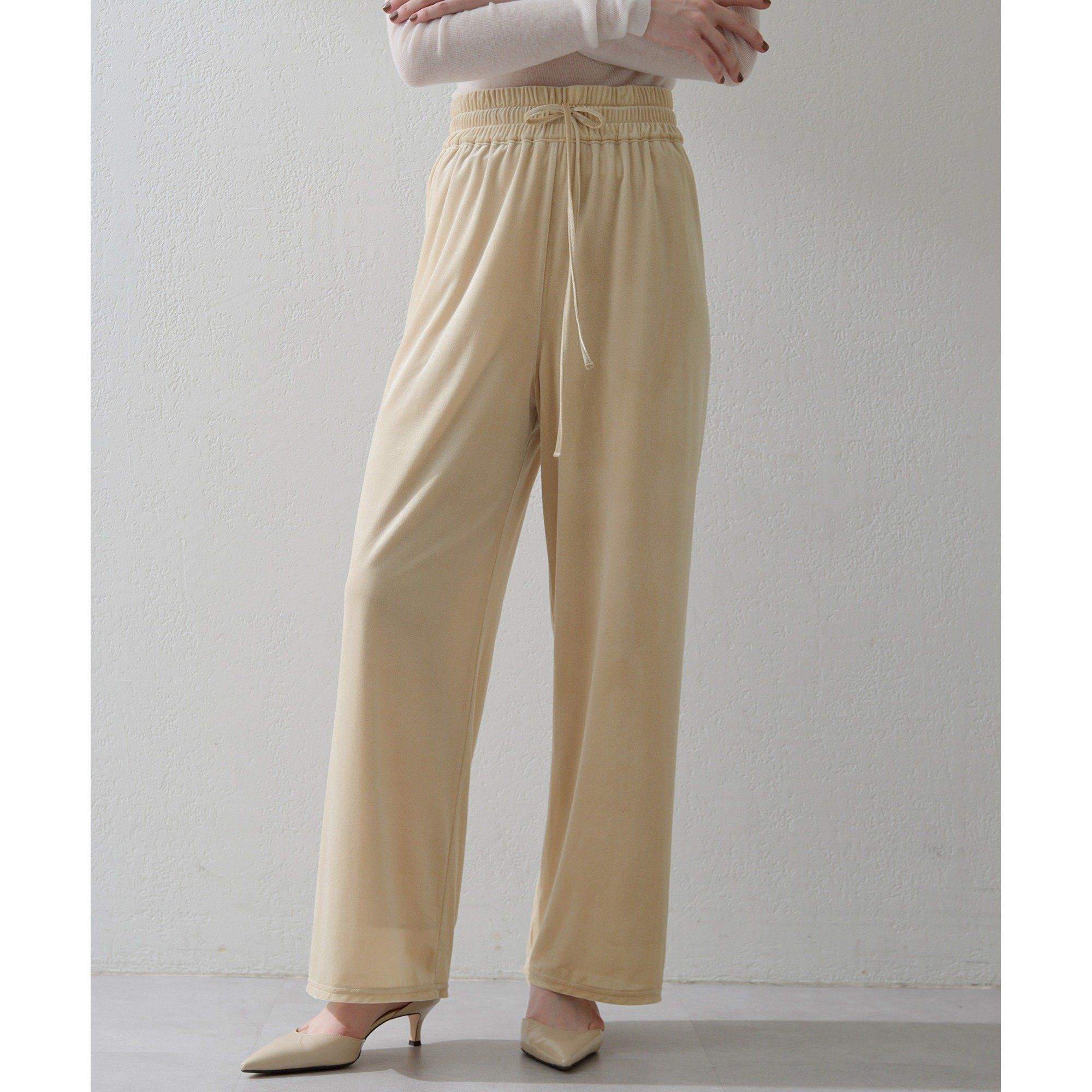 【2025AW】上品なカジュアル感を楽しめる、軽やかベロアパンツ■ベロア素材を使用したイージーパンツ。■ポリウレタンがしっかり入った柔らかで軽やかなベロアトリコット素材が心地よい一枚。■ウエストのゴム仕様や、落ち感のある素材感、程よくワイドなサイズ感がリラクシーな着心地。■やや光沢のあるベロアが上品さをプラスしてくれ、カジュアルになりすぎないのもポイント。■同素材のシアーベロアTEE(ブランド品番:WGP1052106A0002)とのセットで楽しむのもおすすめ。【COLOR】ベージュ:明るさをプラスしてくれる明るめベージュ。ネイビー:大人っぽくクールな印象を与えるネイビー。----------------------------------------------------洗濯方法:水洗い可透け感:ややあり裏地:あり伸縮性:あり光沢感:あり----------------------------------------------------― THE PAUSE(ザ ポーズ) ―流行を自分らしい発想で切り取ってコーディネートを遊ぶ。色のグラデーション、ヴィンテージ感漂うワークアイテム・・・ ギャラリーのようなクローゼットの中から 組み合わせをデザインするようにファッションを楽しむ。そんな、自由なライフスタイルをもつ大人の女性にむけて 新しい感覚のカジュアルスタイルを提案します。【注意事項】・画像の商品はサンプルです。実際の商品と仕様、加工が若干異なる場合があります。また 、パソコンやスマートフォンのモニター環境などにより、色味が違って見える場合がございます。・店頭及び屋外での撮影画像は、光の当たり具合で色味が違って見える場合があります。商品の色味は、スタジオ撮影の画像をご参照ください。・入荷状況により、お届け予定が前後する場合があります。・お客様への発送が店頭販売より遅れる場合があります。・追加生産商品は、一部の店舗、通販で販売中の場合があります。予めご了承下さい。