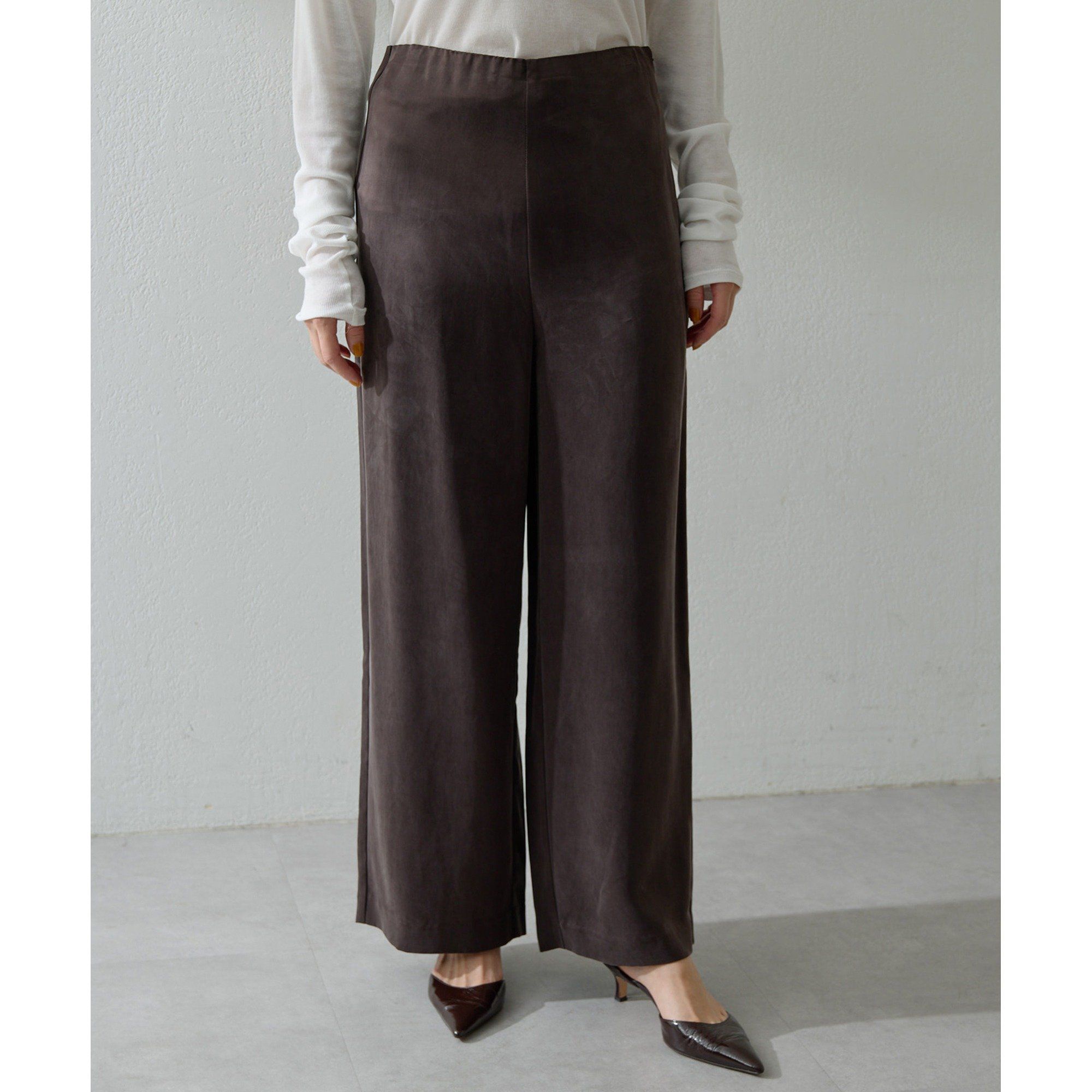 【2025AW】ヴィンテージライクな表情を持つ、大人のとろみパンツ■ヴィンテージ感漂うサテン素材を使用した上質なワイドパンツ。■肉感と表情のあるサテン生地に、フィブリル加工を施すことで綿の起毛のような風合いを表現。■落ち感の良い素材感が美しいストレートラインを際立たせ、毛足のあるニットとの相性も抜群。■ウエストは平ゴム入りのインベル仕様で、見た目の綺麗さを損なわずに優しくフィット。■落ち着きのある艶感で、上品さと快適さを兼ね備えた大人のため一本。【COLOR】ピンクベージュ:ほんのりとピンクを感じる淡いニュアンスベージュ。グレージュ:絶妙なカラーが大人のスタイリングに馴染むグレージュ。ブラウン:エレガントな華やぎを添える赤みを抑えた大人ブラウン。オフホワイト:クリーンな印象をプラスする柔らかなオフホワイト。【MATERIAL】太番手のキュプラを使用し、 綿を起毛したような表情を表現した、肉感のあるサテン素材。----------------------------------------------------洗濯方法:手洗い可透け感:なし裏地:あり(オフホワイトのみ)伸縮性:なし光沢感:あり----------------------------------------------------【注意事項】・画像の商品はサンプルです。実際の商品と仕様、加工が若干異なる場合があります。また 、パソコンやスマートフォンのモニター環境などにより、色味が違って見える場合がございます。・店頭及び屋外での撮影画像は、光の当たり具合で色味が違って見える場合があります。商品の色味は、スタジオ撮影の画像をご参照ください。・入荷状況により、お届け予定が前後する場合があります。・お客様への発送が店頭販売より遅れる場合があります。・追加生産商品は、一部の店舗、通販で販売中の場合があります。予めご了承下さい。