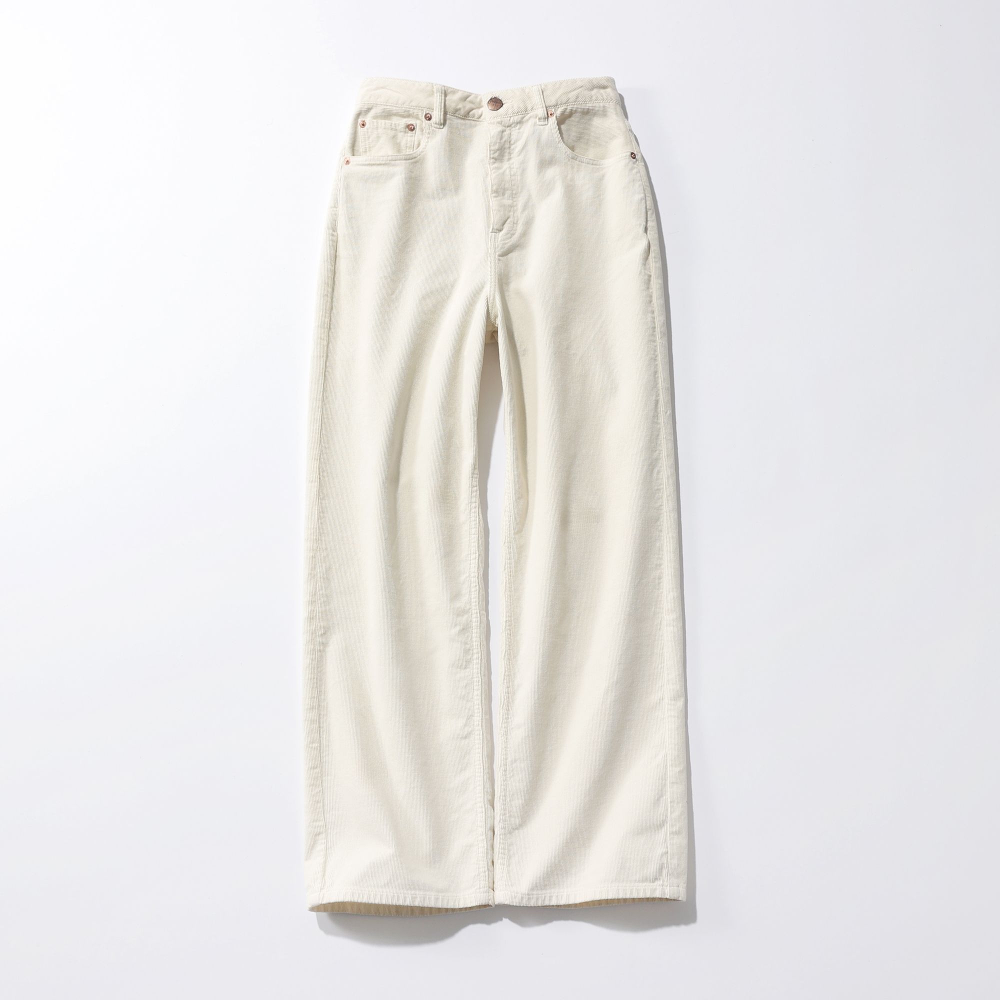 '24年プレフォールにデビューした新モデル。股下が長く見えるように工夫を施したかすかに広がるフレアシルエットで、大人の女性をよりカッコよく、かつ美脚に見せてくれる。肌ざわりのよいコーデュロイ素材がほんのりクラシカルなムード。ニュアンスのあるチャコールグレーと華やかで上品なスモーキーホワイトの2色展開。