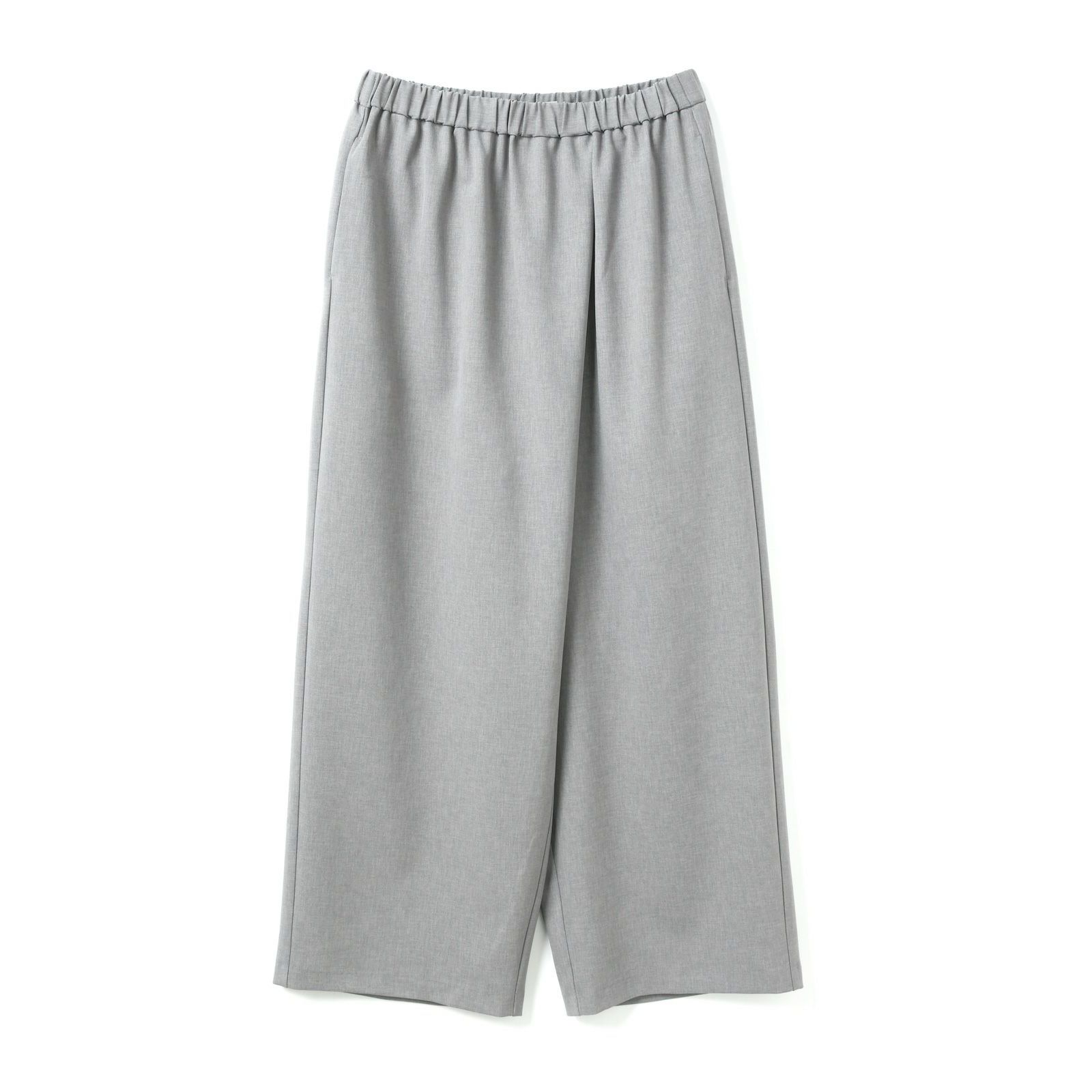 巻きスカートタイプのモードなパンツアイテムでフルレングスのシルエットを表現。ほどよく広いパンツ幅になっておりサラッとした生地感で上品な雰囲気も演出。ウエストはリラックス感のあるゴム使用。3-230103/テーラードシャツジャケットとのセットアップもお勧めです。