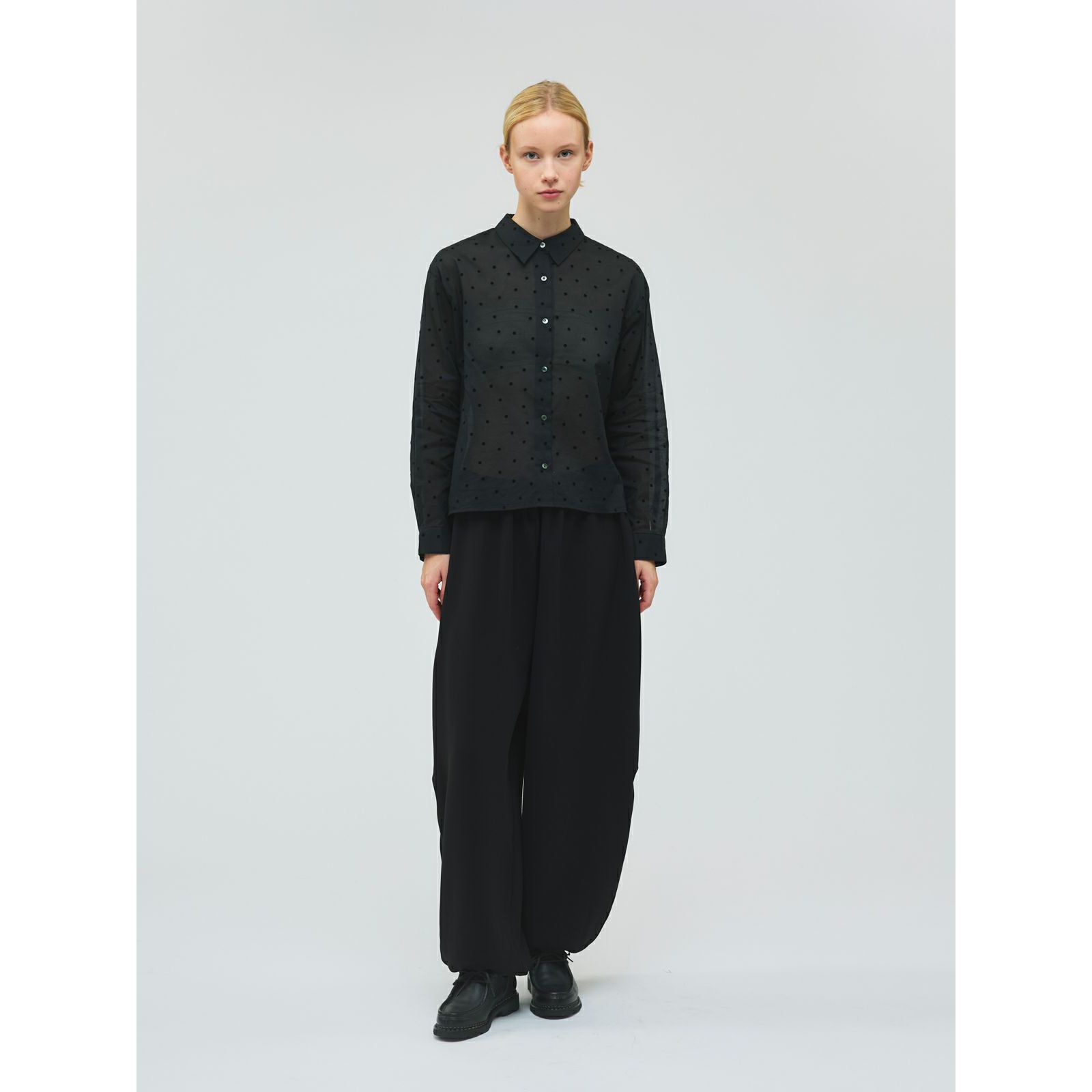 密度の高い丈夫な生地が特徴。セルロースの落ち感のあるシルエットを表現。ゆったりとしたサイズ感でウエストはリラックス感のあるゴム使用、中紐調整付き。雰囲気の異なる2色のカラー展開です。ファッショナブルで印象的な柄が魅力のアイテムです。同シリーズ3-230107/プリントベーシックシャツとのセットアップも可能。