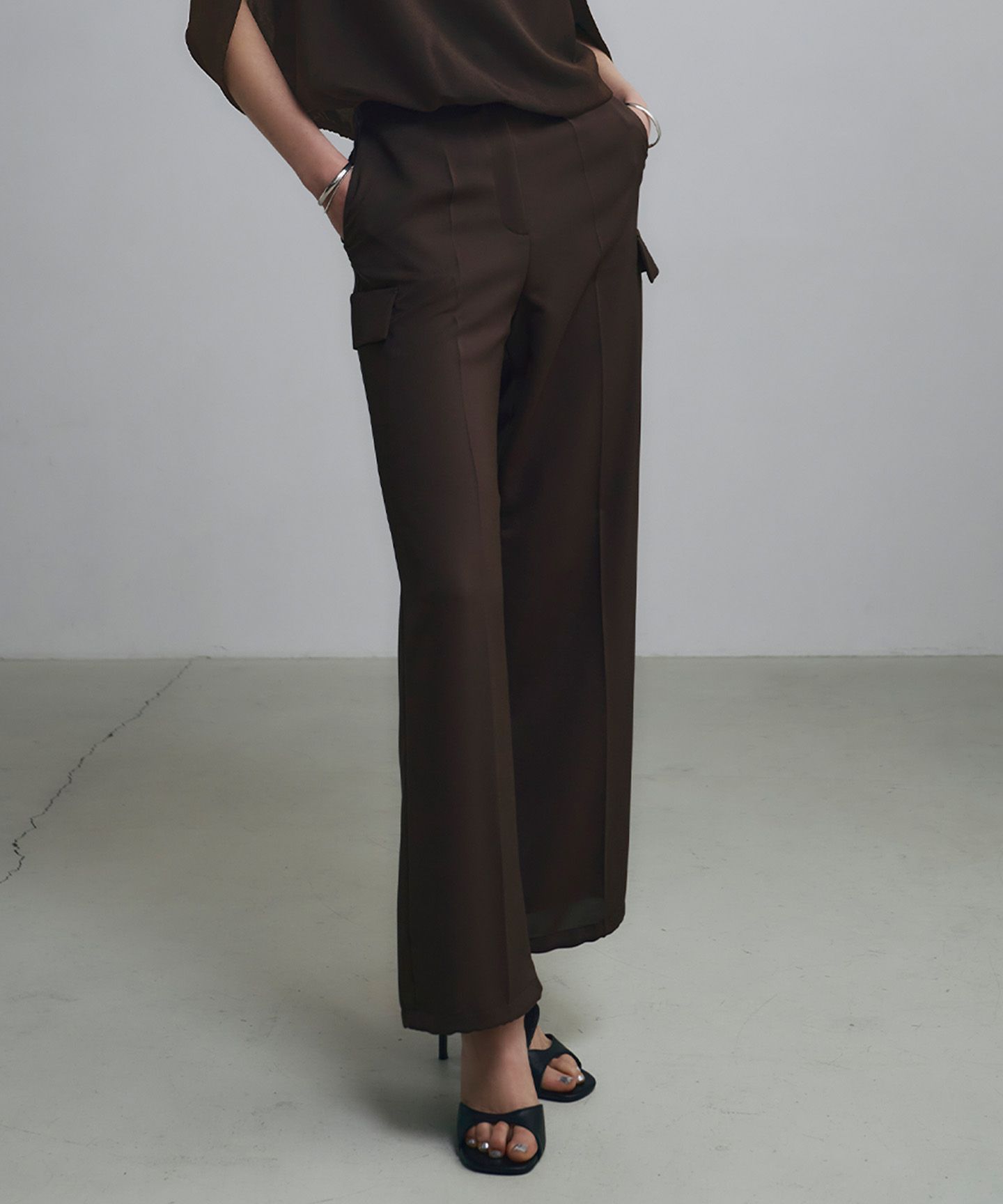 2024SS【毎年人気のFluidBackSatinが今年らしいカラーで登場】シーンレスに活躍、機能性も兼ね備えたきれい目パンツ■デザインウエストがドロストディテールでラクな履き心地のセンタープレス入りスティックパンツです。ベルト部分は光沢のある裏面使い、フロントのポケット口、ドロストの紐部分をニットパーツにするなどディテールに拘ったデザインに仕上げています。単品使いはもちろん、同シリーズのブラウスやジレと合わせてセットアップでセレモニーシーンやオフィスでも活躍します。チャコール(004)パールグレー(011)はWEB限定カラーです。※カデットブルー(074)は新色です。■素材身体のラインを拾わない程よい肉感で、適度な落ち感とハリ感を併せ持ったバックサテン素材です。滑らかな肌触りでストレスフリーな着心地です。■機能性1)接触冷感ひんやりとした爽やかタッチの素材だから、暑いシーズンでも快適な着心地。2)UVケア嬉しい紫外線ケア付き。3)速乾お洗濯後も乾きやすいのも嬉しいポイント。4)Washableご自宅でお洗濯ができるのでお手入れも楽々。※商品の取り扱い方法につきましては、タグ等に記載されている「取り扱い上の注意」「洗濯表示」をご確認ください。※採寸情報はサンプル商品のデータです。実際の商品と仕様が異なる場合がございます。※商品画像はサンプルを使用しているため、実際にお届けする商品と色味やサイズなどの仕様に変更がある場合がございます。予めご了承ください。