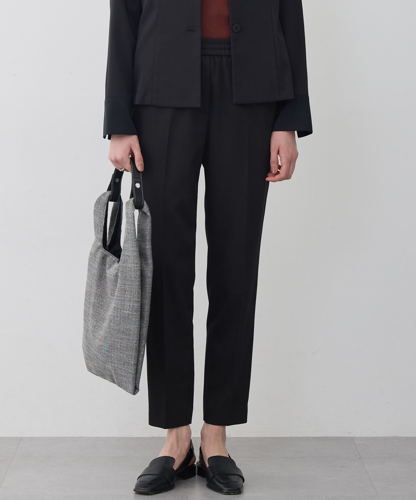 2025AWオンオフ問わず活躍!あたたかく、イージーな履き心地も嬉しいストレートパンツ■デザインウールを使用した素材で、あたたかく履いていただけるストレートパンツです。ウエスト部分はゴムで履き心地良く、内側はドロスト仕様になっています。ウエストベルト部分の別布使いやメタルボタンもデザインポイントに。ワイド過ぎないきれいめなストレートシルエットで、合わせるトップスも選ばず、通勤から休日まで幅広く着回せる万能アイテムです。■素材カシミヤ混の原料を使用したウールのライトフラノを使用しています。従来のフラノとは違い、ソフトな風合いと膨らみ感のある軽い素材感がポイントです。手洗いも可能で、上質感とイージーケアを兼ね備えた素材に仕上げています。※商品の取り扱い方法につきましては、タグ等に記載されている「取り扱い上の注意」「洗濯表示」をご確認ください。※採寸情報はサンプル商品のデータです。実際の商品と仕様が異なる場合がございます。※商品画像はサンプルを使用しているため、実際にお届けする商品と色味やサイズなどの仕様に変更がある場合がございます。予めご了承ください。
