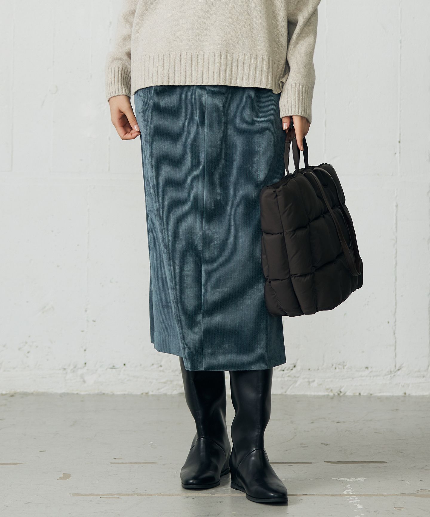 快適な履き心地ながらすっきり見えが叶うコーデュロイスカート■デザインウエストにドロストディテールを効かせたストレートシルエットのコーデュロイスカートです。 ウエスト周りはもたつかないよう、同色の別布で切り替えたゴム入りなので、履き心地も快適です。ドレープ性のある素材なので、すっきりとしたシルエットを演出してくれます。■素材ギリシャの生地メーカーIFANSI社のインポート素材で、カジュアルになり過ぎない大人な雰囲気のある素材です。一般的に綿素材の多いコーデュロイですが、ポリエステルを使用しているので、ソフトな風合いと光沢、適度な落ち感があります。太すぎない中畝のため、カジュアルになり過ぎずに着て頂けます。■同素材アイテムパンツ(PRWMGS0009)※画像はサンプルを使用している為、実際にお届けする商品と仕様、加工、サイズが若干異なる場合がございます。予めご了承ください。※撮影環境の都合上、実際の商品と色味が異なって見える場合がございます。