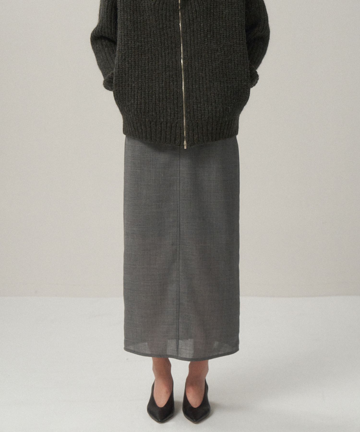 ■DESIGNアンクル丈のストレートシルエットスカート。縫い代をあえて太くし、ウールの上質感ある透け感を活かしたデザインにしています。腿まで裏地が付いてるので足さばきも良く、ウエストは紐でアジャスト可能です。■MATERIAL岐阜県一宮市で、細番のウール糸を密度を甘く織られたウールガーゼ素材です。オリジナルの撚り方を施したウール糸を使っている為、程よいドレープ性とスケ感が特長の、エイトンオリジナル素材です。WOOL LAWN | CPOジャケットWOOL LAWN | SNOW CAMO パンツ