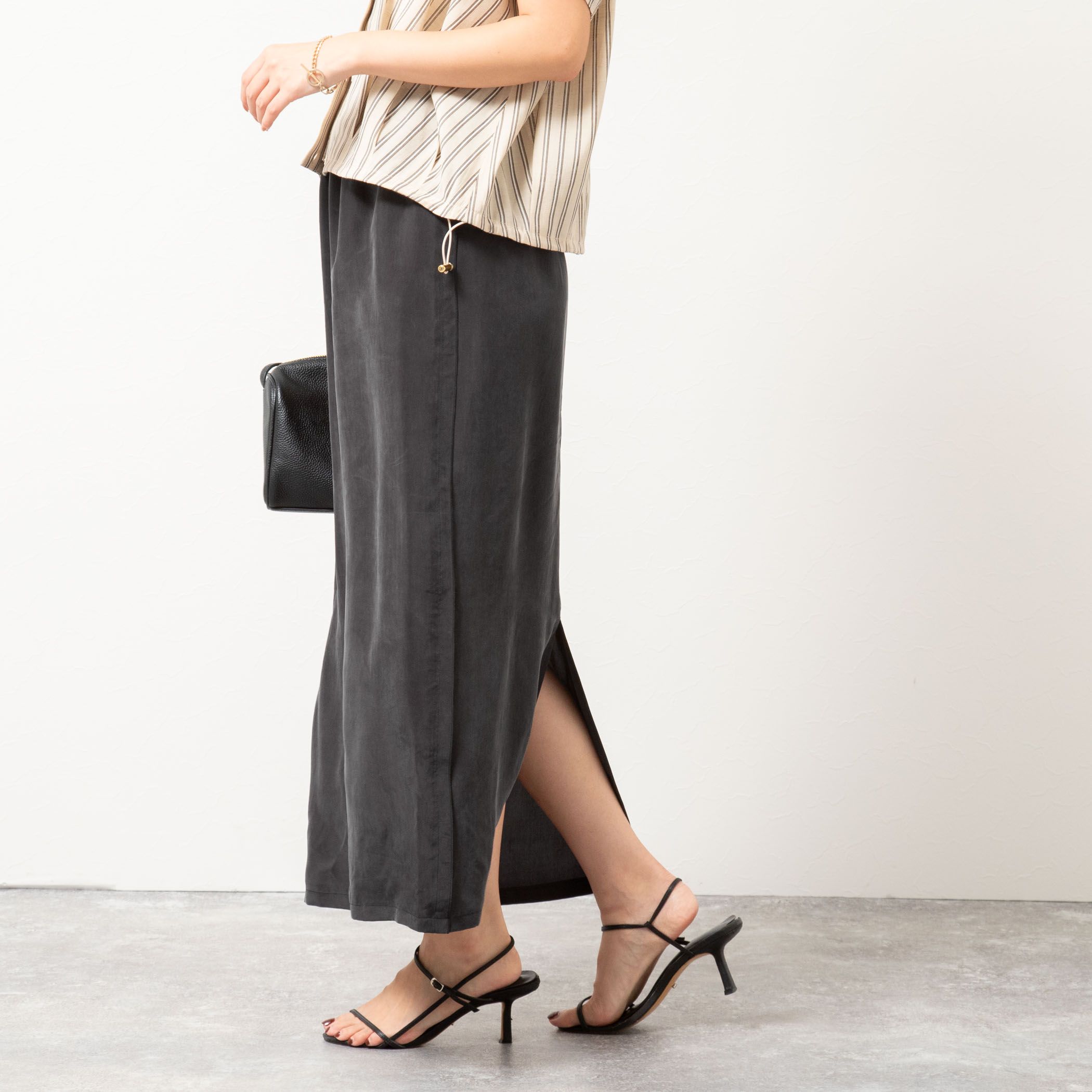 ◇25SS◇2nd NOLLEYS◆Point・人気素材「キュプラレーヨンフィブリルサテン」を使用したロングスカート・光沢のある生地にあえてフィブリル加工(摩擦により毛羽立たせる)を施した、洗い込んだようなヴィンテージ感がある素材を使用・素肌に気持ち良い風合いも魅力・再生繊維を使用したサスティナブル素材で、接触冷感/速乾/UVカットの高機能・バイヤス裁ちにすることで生地に落ち感が出て、自然なマーメイドシルエットになるのがポイント・ウエストはドロスト+ゴムでストレスフリーな穿き心地・リネンシャツにサラッと合わせたり、カジュアルなスウェットを女性らしくまとめてくれうるアイテム・同素材のノースリーブブラウス(5-0036-2-01-010)とセットアップ着用がおすすめ・シーズンレスで着回し可能・裏地なし※生地の特性上、着丈に誤差が生じる場合がございますのでご了承ください。●お取扱い上のご注意●末永くご愛用頂くために、アテンションタグを必ずご確認の上、着用又はお取り扱い下さい。気になる商品は、お気に入り登録がオススメです!クーポン情報、入荷情報が、通知されるようになります。※手洗い可※店頭及び屋外での撮影画像は、光の当たり具合で色味が違って見える場合があります。商品の色味は、スタジオ撮影の画像をご参照下さい。※商品画像に関しては出来る限り忠実に表示出来るよう努めておりますが、お客様がご利用のモニターの設定及び特性により、実際の商品と比較し色味に若干の誤差が生じる場合があります。※画像の商品はサンプルとなりますので実際の商品と仕様、加工、サイズが若干異なる場合がございます。