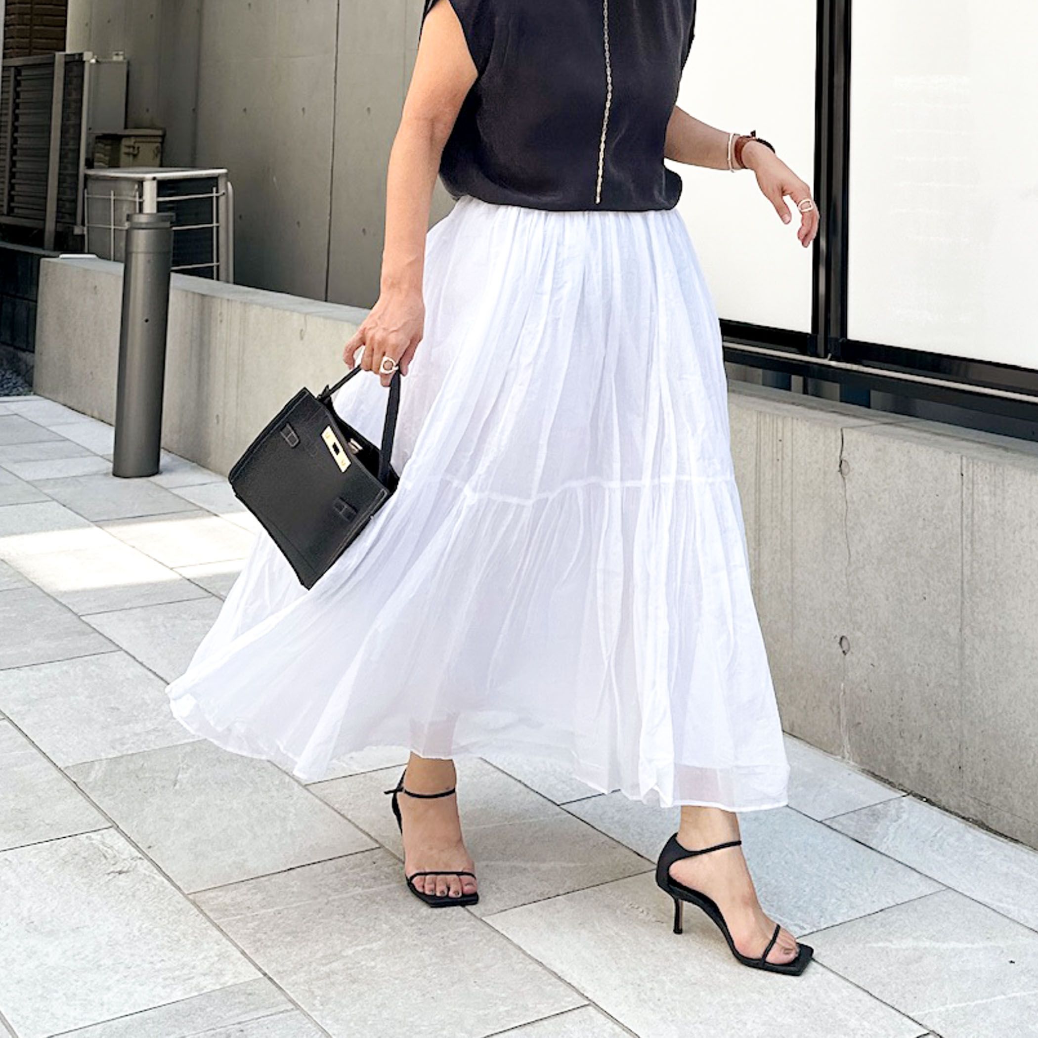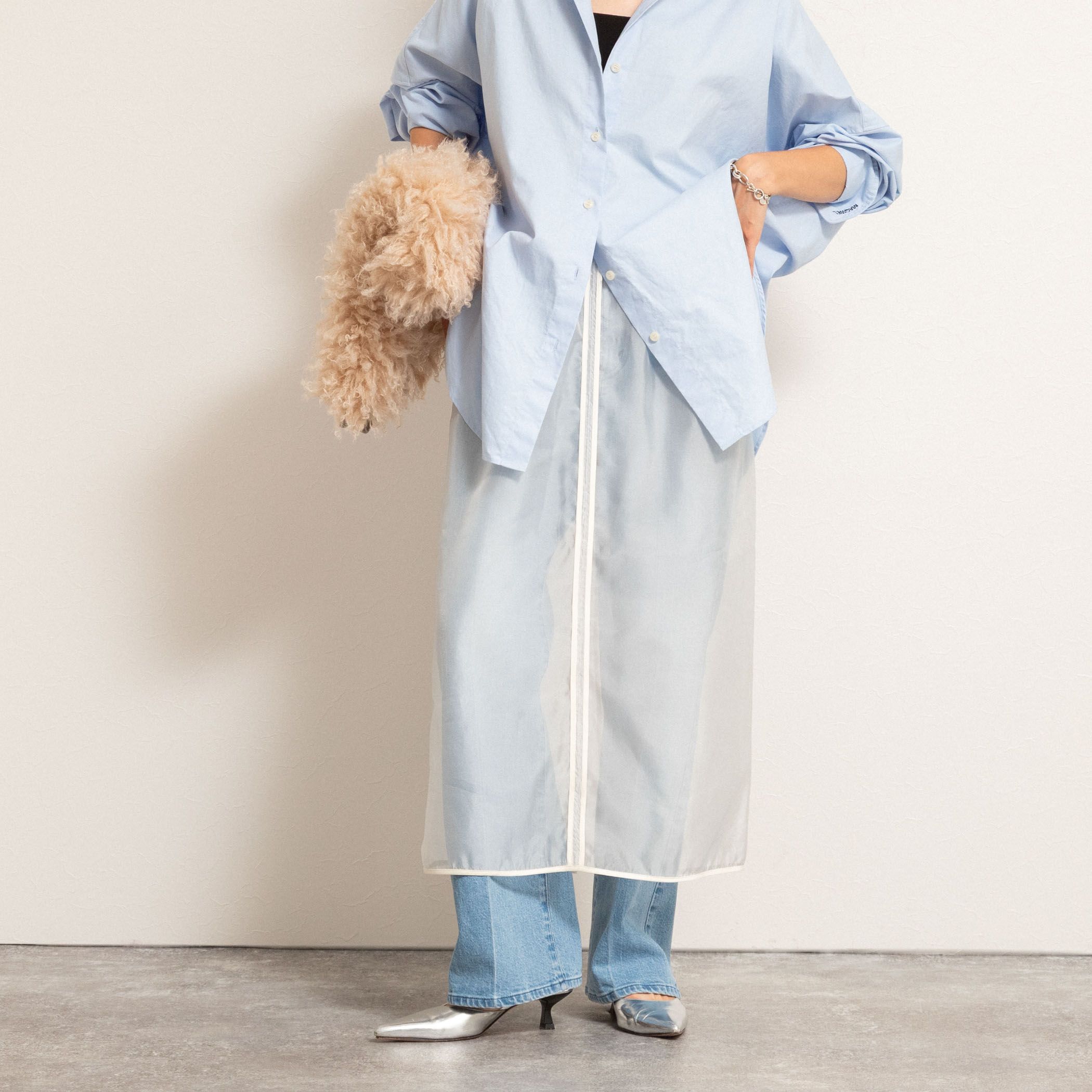 ◇25AW◇MAQWEL◆Point・オーガンジー素材を使用し、シアー感が華やかなスカート・シンプルなデザインながらも、背中心のデザインとパイピングがアクセント・デニムやスラックスなど、手持ちの服に重ねて着るだけでコーデをアップデートできる1枚・ウエストはぐるりゴムで重ねても楽な穿き心地。・シーズンレスで活躍するアイテム・今季MAQWEL新作の、カプリジョーゼットパンツ(5-0039-5-09-001)との今年らしい着こなししがおすすめ・同素材のワンピース(5-0039-5-07-001)もあり●お取扱い上のご注意●末永くご愛用頂くために、アテンションタグを必ずご確認の上、着用又はお取り扱い下さい。気になる商品は、お気に入り登録がオススメです!クーポン情報、入荷情報が、通知されるようになります。※手洗い可※店頭及び屋外での撮影画像は、光の当たり具合で色味が違って見える場合があります。商品の色味は、スタジオ撮影の画像をご参照下さい。※商品画像に関しては出来る限り忠実に表示出来るよう努めておりますが、お客様がご利用のモニターの設定及び特性により、実際の商品と比較し色味に若干の誤差が生じる場合があります。※画像の商品はサンプルとなりますので実際の商品と仕様、加工、サイズが若干異なる場合がございます。