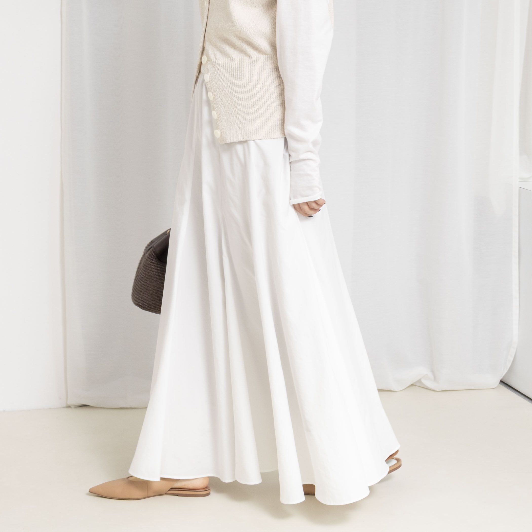 ◇25SS◇2nd NOLLEYS◆Point定番人気のシーズンレスで着回せる大人スカートが再登場!・ソフトで軽い風合いのポリエステルタフタを使用したロングスカート・微起毛とヴィンテージ加工を施し、ハリを残しながらも軽い風合いに仕上げた1枚・UVカット、速乾性があり機能性◎・静電気の蓄積を防ぐ、帯電防止裏地を使用・ウエストはドローコード+ゴムでストレスフリーな着心地・生地を8枚接ぎ合わせ、4か所にマチを入れたデザイン・ウエストはすっきり見えつつ、裾に向かってボリュームが出るシルエット・動くたびに裾が揺れてドラマティックなスカート・シンプルなトップス合わせでも着映え力抜群・オールシーズン着回せる便利アイテム※グレイッシュブルー、ミディアムグレーはWEB&一部店舗限定販売カラーとなっております。●お取扱い上のご注意●末永くご愛用頂くために、アテンションタグを必ずご確認の上、着用又はお取り扱い下さい。※手洗い可気になる商品は、お気に入り登録がオススメです!クーポン情報、入荷情報が、通知されるようになります。※店頭及び屋外での撮影画像は、光の当たり具合で色味が違って見える場合があります。商品の色味は、スタジオ撮影の画像をご参照下さい。※商品画像に関しては出来る限り忠実に表示出来るよう努めておりますが、お客様がご利用のモニターの設定及び特性により、実際の商品と比較し色味に若干の誤差が生じる場合があります。※画像の商品はサンプルとなりますので実際の商品と仕様、加工、サイズが若干異なる場合がございます。