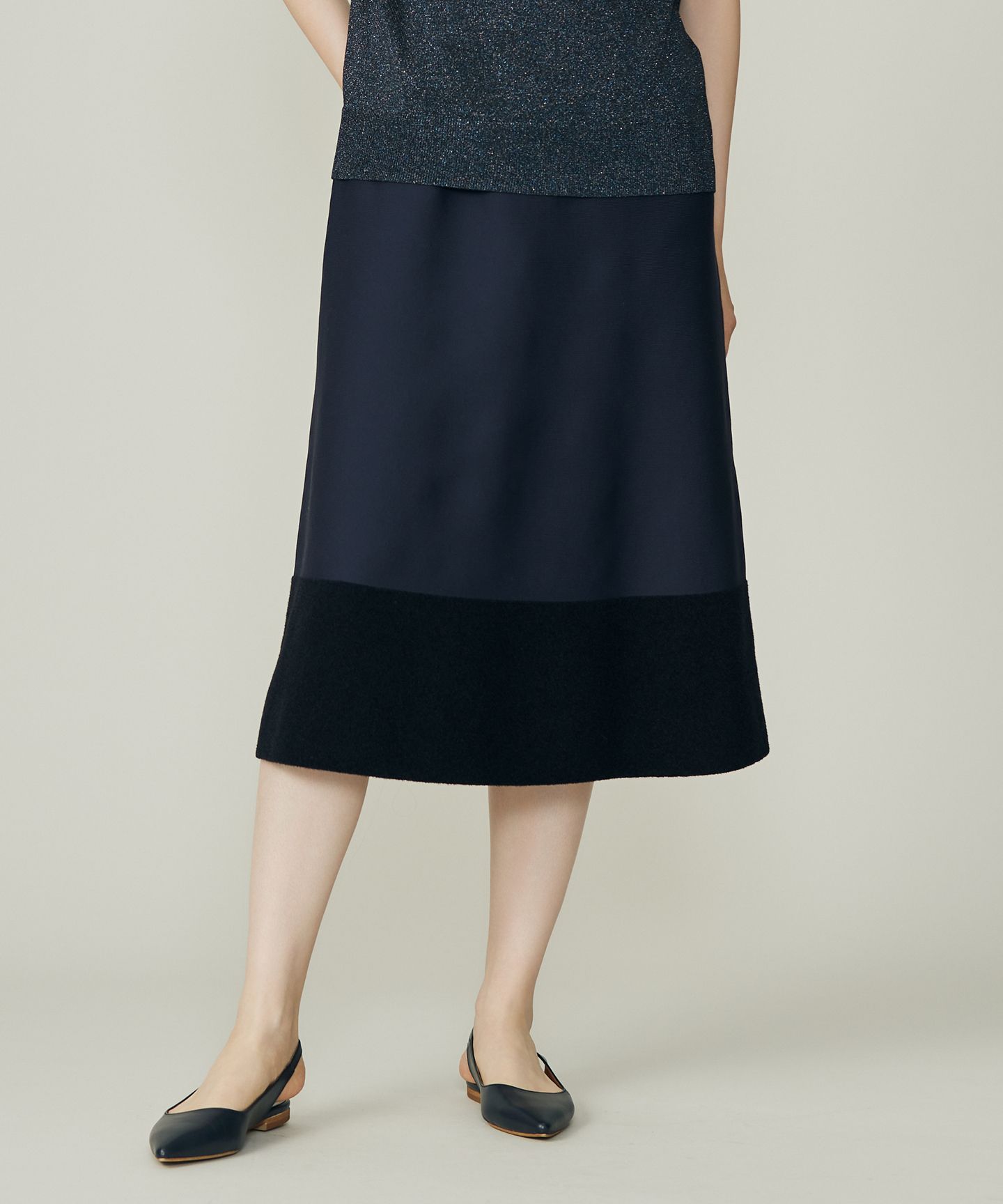 程よくボリュームのあるシルエットとブロッキングが華やかなデザインスカート■デザイン裾に施した質感の異なる素材のブロッキングがアクセントになったフレアシルエットスカートです。ニットならではのしなやかな着心地と、きちんとした華やかな印象を併せ持ったアイテムです。同素材のニット(KRWRGW0358)とセットで着て頂くのもおすすめです。■素材軽量ながらボリューム感があり、しなやかで程よい光沢感が特徴のポリエステル糸を使ったハイゲージニット素材です。素材の持つ微光沢と切り替えに使用している微光沢のあるモール素材が華やかさをプラスしています。■同素材アイテムニット(KRWRGW0358)※画像はサンプルを使用している為、実際にお届けする商品と仕様、加工、サイズが若干異なる場合がございます。予めご了承ください。※撮影環境の都合上、実際の商品と色味が異なって見える場合がございます。