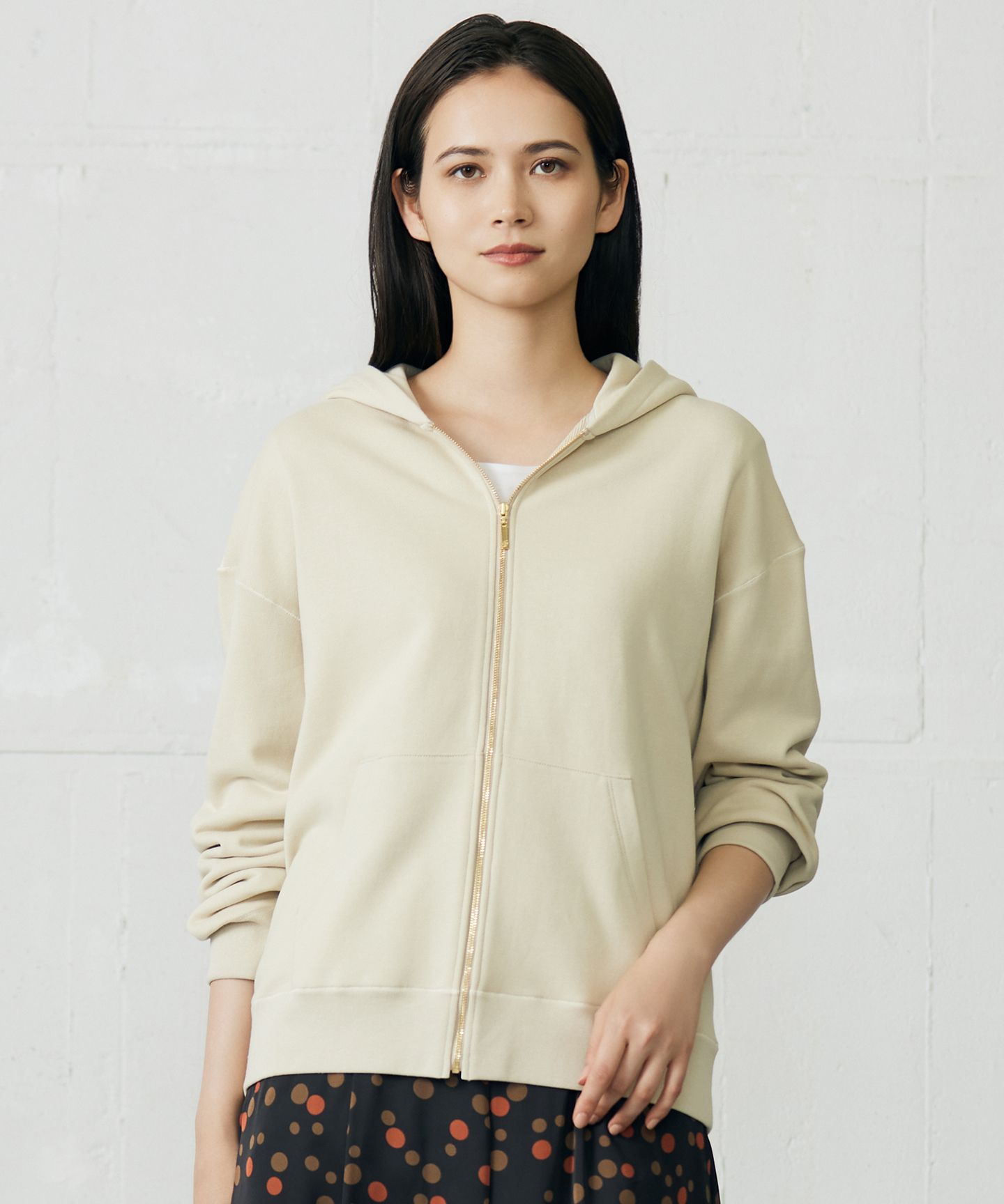 大人カジュアルが叶うフード付きのジップパーカー■デザイン程よく肌離れしたシルエットのシンプルで使いやすいジップパーカーです。リラックス感のあるコーディネートに最適なフード付きアイテムです。ルーズロックというシームがすっきりとしなやかに仕上がる縫製方法を取り入れているので、程よい柔らかさが特徴になっています。■素材表糸に特殊加工の糸を使用することで、糸に光沢があり毛羽立ちが起きにくく、毛玉ができにくいクリアーな目面が特徴です。裏糸には太番の甘撚りの糸を使用することで膨らみのある裏毛素材になっています。中糸には表と裏との逆撚りの糸を使用することで斜行を軽減しています。■同素材アイテムレタリングスウェット(KKWMGW0531)※画像はサンプルを使用している為、実際にお届けする商品と仕様、加工、サイズが若干異なる場合がございます。予めご了承ください。※撮影環境の都合上、実際の商品と色味が異なって見える場合がございます。