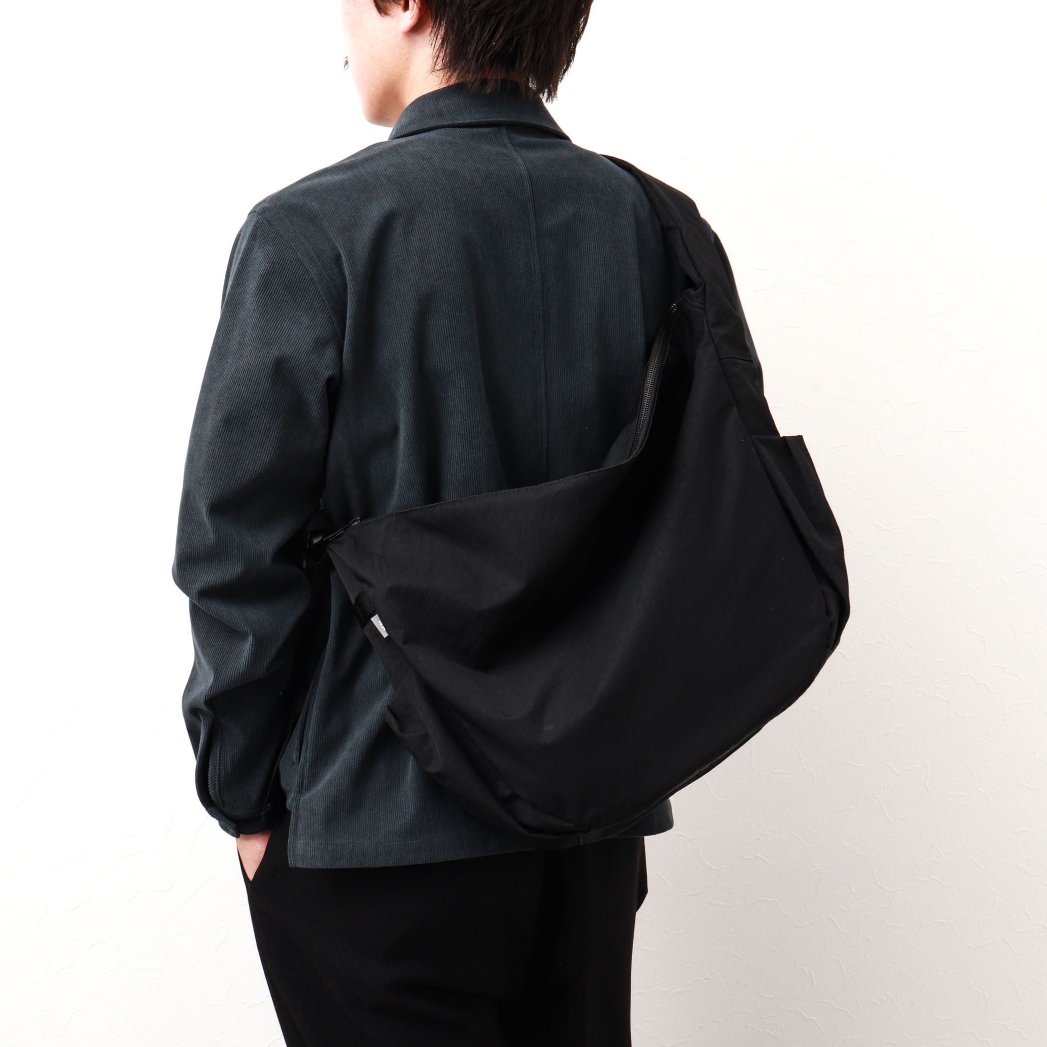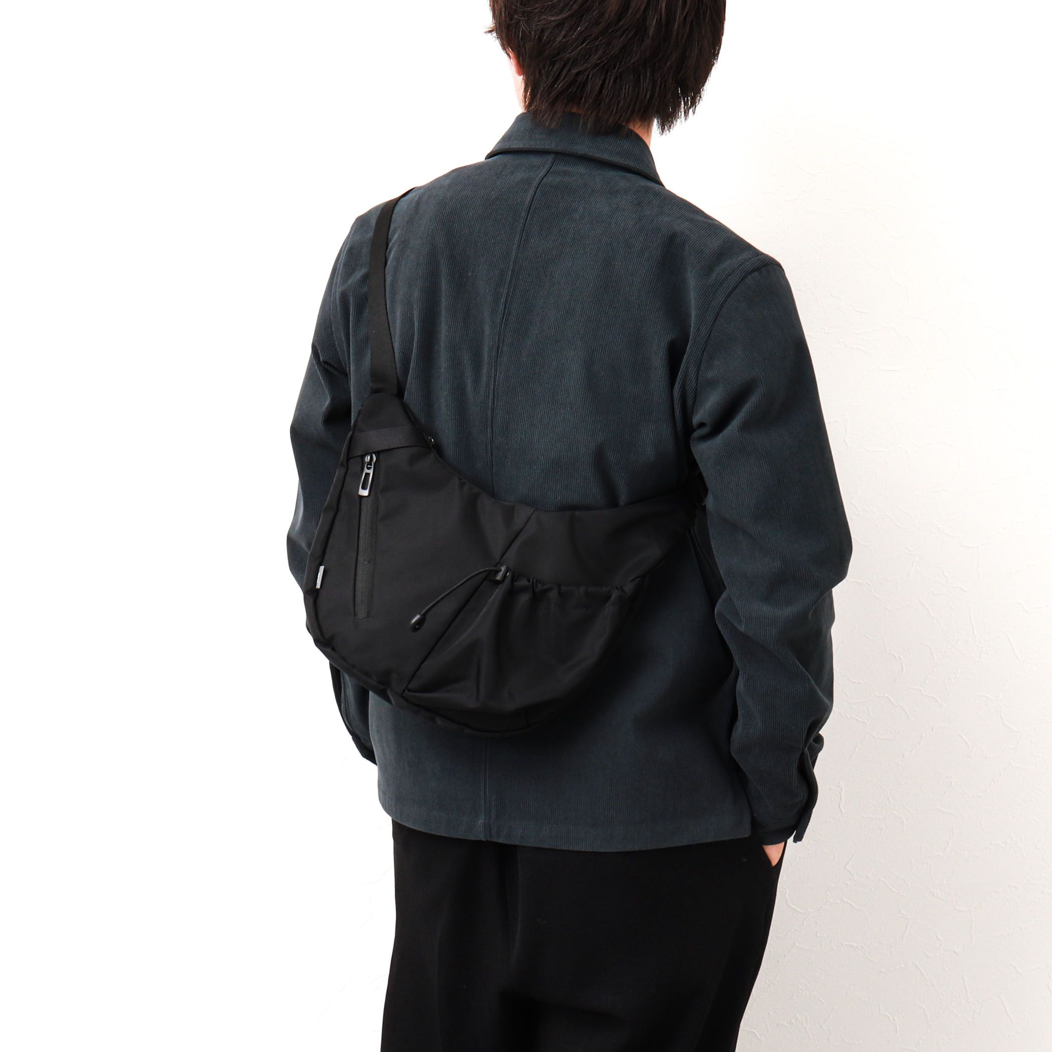 _新ブランド「NESK」が提案する新時代の洗練されたコレクションから体に沿うようなロングボディバッグ_メイン室の両脇にメッシュホルダーとギャザーポケットを配置して機能面だけでなくデザインとしてもワンポイントアップ。やや光沢感のあるナイロンツイル生地「TWILL BLACK」と、ナイロンツイル生地にマットなコーティング加工を施した「FACE BLACK」の2種類の素材があります。【TWILL BLACK】柔らかな質感としわになりにくい特性のナイロンツイル生地は、軽量でありながら引裂強度に優れたナイロン素材です。通常の平織生地と異なるツイル織りは適度な伸縮性も備えており、耐久性にも優れています。表面には撥水加工が施されており、雨や汚れにも強い素材です。【FACE BLACK】ワッシャー加工を施したナイロンツイル生地にマットなポリカーボネート加工を施した素材です。CORDURA原糸を使用したナイロンツイル生地は引裂強度に優れており、軽量かつ高密度で織られているため、雨や汚れにも強い素材です。表記カラー…メーカーカラー●ブラック…TWILL BLACK ●ブラック系1…FACE BLACK メーカー品番:NS-001【NESK/ネスク】2025年春ローンチの日本発の新ブランド。「NEW STANDARD」から生み出された造語で、現代のライフスタイルに新しいスタンダードを提案します。都会の喧噪から自然の静けさまで、あらゆるシーンで活躍する機能性と洗練されたデザインが特徴です。シンプルで使いやすいだけでなく、持つ人の個性と感性を引き立てる存在感のあるプロダクトを展開します。NESKは、日常に新たな基準と価値を創造し続けます。★気になるアイテムは【お気に入り登録】がオススメです!入荷情報やクーポン、セール情報が通知されるようになります。【お取扱い上のご注意】末永くご愛用頂くために、アテンションタグを必ずご確認の上、着用又はお取り扱い下さい。※店頭及び屋外での撮影画像は、光の当たり具合で色味が違って見える場合があります。商品の色味は、スタジオ撮影の画像をご参照下さい。※商品画像に関しては出来る限り忠実に表示出来るよう努めておりますが、お客様がご利用のモニターの設定及び特性により、実際の商品と比較し色味に若干の誤差が生じる場合があります。※画像の商品はサンプルとなりますので実際の商品と仕様、加工、サイズが若干異なる場合がございます。
