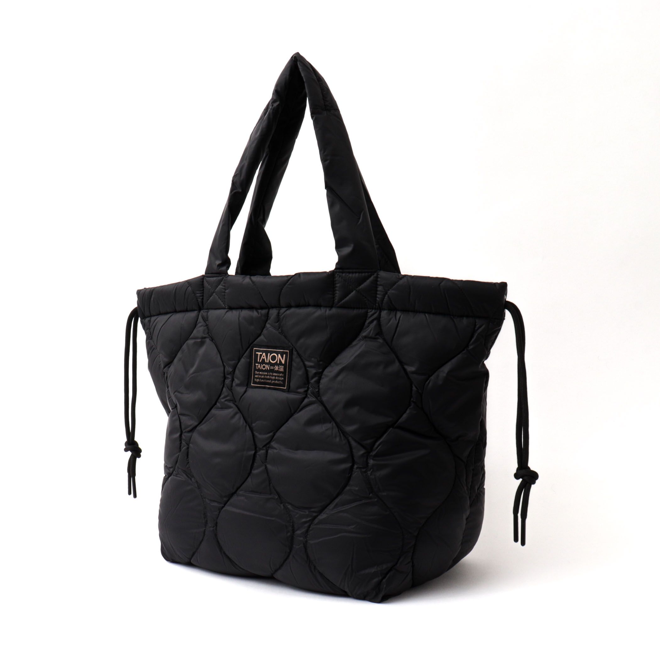 _TAION 「BASIC LINE」から柔らかく撥水性を兼ね備えた超軽量型ダウントートバッグM_【BASIC LINEとは】定番という名の通り、不変でありながらどこか新しくなければいけない。800FLP以上の反発力を備えたダウンを使用し、シンプルでありながら圧倒的な差別化を目指したTAION定番ラインです。 ダウン特有の軽くて柔らかいフワッとしたボリューム感が特徴で、小さなTAIONロゴの反射プリントをアクセントに、シンプルで飽きのこないミニマムなデザインに仕上げました。ユニセックスでお使いいただけてちょっとしたプレゼントにも最適です。【ダウンについて】ダウンの品質は軽くて反発力の良い800フィルパワー以上を使用し、ダウンキルティングは8cmの格子を採用。表地は撥水加工を施した400Tのナイロンタフタ生地、裏地はACコーティングを施したダウンが吹き出しにくい生地を使用しています。(雨具のような撥水ではありません)表示カラー…メーカーカラー●ブラウン系1…REGULAR CAMO●ブラック…BLACK●チャコールグレー…CHARCOAL メーカー品番:TAION-TOTE02-M重量:約110g【ATTENTION】ダウンは天然由来の素材であるため、稀に濃い色の羽が混入することがあり、表面に透けて見える場合がありますが不良品ではありませんので返品や交換につきましてはご対応いたしかねますのであらかじめご了承ください。また、商品の個体差により1〜2cmのサイズ誤差が生じる場合がありますので予めご了承ください。【TAION / タイオン】価値のある価格の追求にフォーカスを当て、高機能・保温性・着心地に拘ったダウンウェアーを展開するブランド「TAION」。高密度撥水加工を行った生地を中心に、機能性溢れるアイテムを取り扱っています。★気になるアイテムは【お気に入り登録】がオススメです!入荷情報やクーポン、セール情報が通知されるようになります。【お取扱い上のご注意】末永くご愛用頂くために、アテンションタグを必ずご確認の上、着用又はお取り扱い下さい。※店頭及び屋外での撮影画像は、光の当たり具合で色味が違って見える場合があります。商品の色味は、スタジオ撮影の画像をご参照下さい。※商品画像に関しては出来る限り忠実に表示出来るよう努めておりますが、お客様がご利用のモニターの設定及び特性により、実際の商品と比較し色味に若干の誤差が生じる場合があります。※画像の商品はサンプルとなりますので実際の商品と仕様、加工、サイズが若干異なる場合がございます。