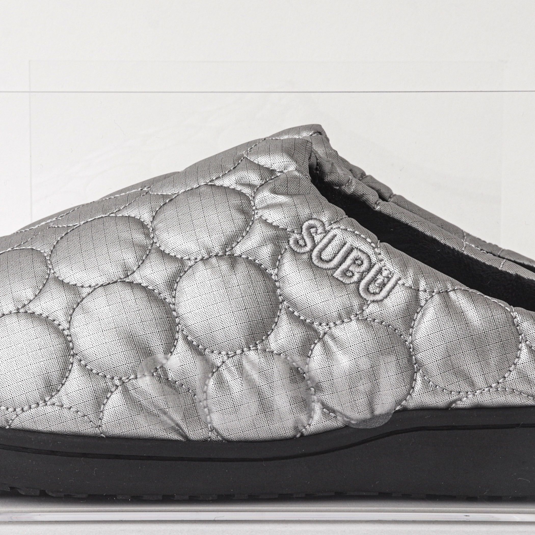 _「誰も知らない冬のサンダル」寒い時期、ふと出掛ける時に素足で履けるウィンターサンダル「SUBU」から新たなシリーズとしてステッチワークのCIRCLEが登場_ダウンのような暖かさで素足をつつみ込み、起毛加工の内側の生地と4層構造のインソールが足全体に抜群のフィット感を生み出し、優しい履き心地をつくりだします。アッパー生地に水や汚れに強いテフロン加工を施しており、近所へのちょっとした外出やアウトドアシーン、オフィスや自宅などでルームシューズとしても最適。アッパーとソールの縫製は熟練の職人による手作業でコストパフォーマンス抜群のアイテムです。表記カラー…メーカーカラー●シルバー…SILVER●ブラック…BLACK サイズについて:1・・・約24.0-25.5cm 2・・・約26.0-27.5cm 3・・・約28.0-29.5cm ◆気軽に持ち運べる収納袋付き◆【SUBU/スブ】冬にサンダルを履く。「ちょっとそこまで出たいとき、サンダルは寒い…。」今までにない新しい秋冬のサンダルです。寒い冬、ふと出掛けるときにも素足で履けるスタンダードデザインのSUBU。ダウンのような暖かさと、起毛加工の内側の生地と4層構造のインソールが足全体にフィットし、優しい履き心地を創り出します。★気になるアイテムは【お気に入り登録】がオススメです!入荷情報やクーポン、セール情報が通知されるようになります。【お取扱い上のご注意】末永くご愛用頂くために、アテンションタグを必ずご確認の上、着用又はお取り扱い下さい。※店頭及び屋外での撮影画像は、光の当たり具合で色味が違って見える場合があります。商品の色味は、スタジオ撮影の画像をご参照下さい。※商品画像に関しては出来る限り忠実に表示出来るよう努めておりますが、お客様がご利用のモニターの設定及び特性により、実際の商品と比較し色味に若干の誤差が生じる場合があります。※画像の商品はサンプルとなりますので実際の商品と仕様、加工、サイズが若干異なる場合がございます。