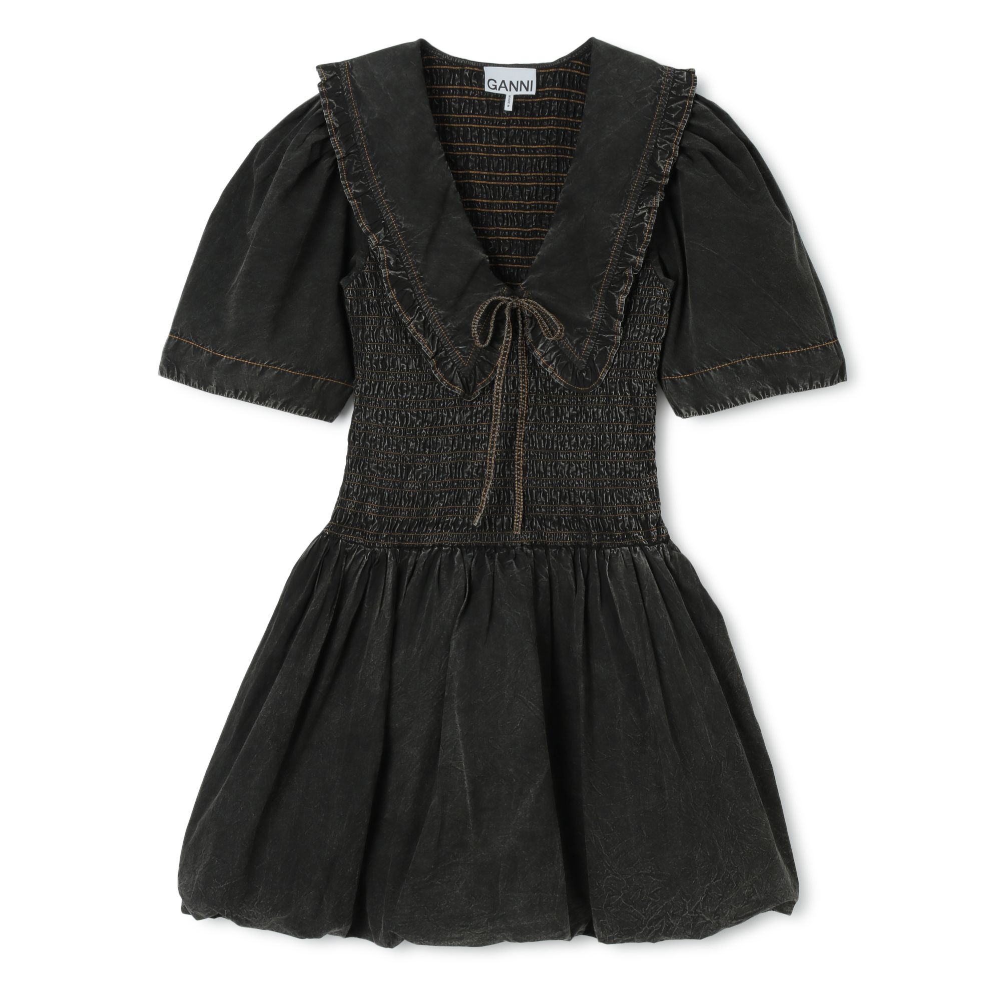 ふわっと丸みを帯びたミニ丈が、着れば自然な立体感を叶えるスモックドレス。深めのVネックを囲むBIGカラーとパフスリーブで「GANNI」らしいガーリーさもアピール。100%オーガニックコットンをウォッシュ仕上げでユーズド風に仕上げ、着こなしの幅も広さも自慢!