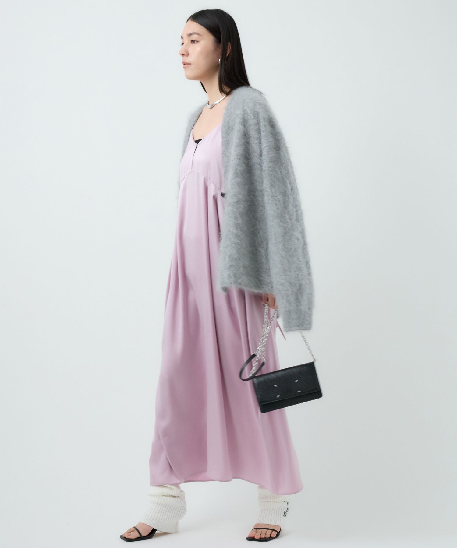 2025 PRE FALL COLLECTION-design-ストンとしたシルエットが新鮮なキャミワンピース。フロントにはスリットを入れて、クルミボタンで開閉できるようにしました。レイヤードで変化をつける着こなしができるような仕様です。バックスタイルは紐で長さも簡単に調整していただけるので、重ねるアイテムによって紐の長さを調整していただけます。-fabric-シルクのような上品な雰囲気とナチュラルなシワによるリラックス感を兼ね備えたトリアセテートのサテン素材です。この素材で使われるトリアセテート糸は繊維表面にランダムな溝があり、その溝が光を拡散することで柔らかく自然な光沢が生まれるように作られています。天然素材のナチュラルな触感と合成繊維の機能性を持ち合わせた素材です。【Chaos(カオス)】「カオス」の時代にあっても、自由かつインディペンデントな感性を大切にする大人の女性たちへ。素材やディティールにこだわったオリジナルと国内外で買い付けたユニークかつアーティな感覚のセレクトをミックスした発信をしています。「大人の為の上質な日常着」