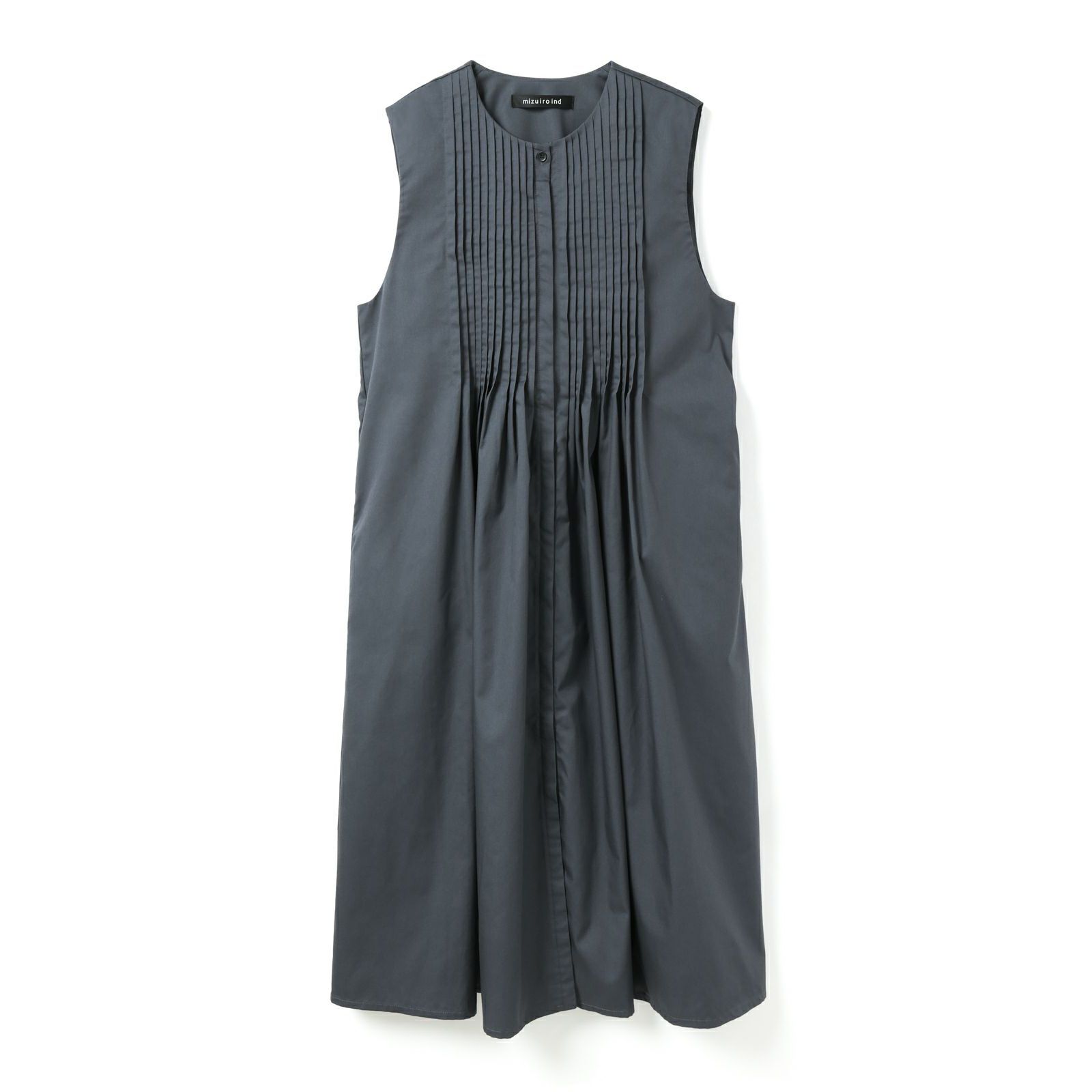フロントに施したピンタックが特徴的。ウエスト切替からタックが多く入っているのでフンワリ感のある女性らしい1枚となっています。フロントボタンは閉めてノースリーブのワンピースとして暑い季節にも着用可能。ジレとしてコーディネートに重ねて雰囲気を変えるのも素敵で、季節が進んでも長袖での着こなしも魅力的に演出できる1枚です。
