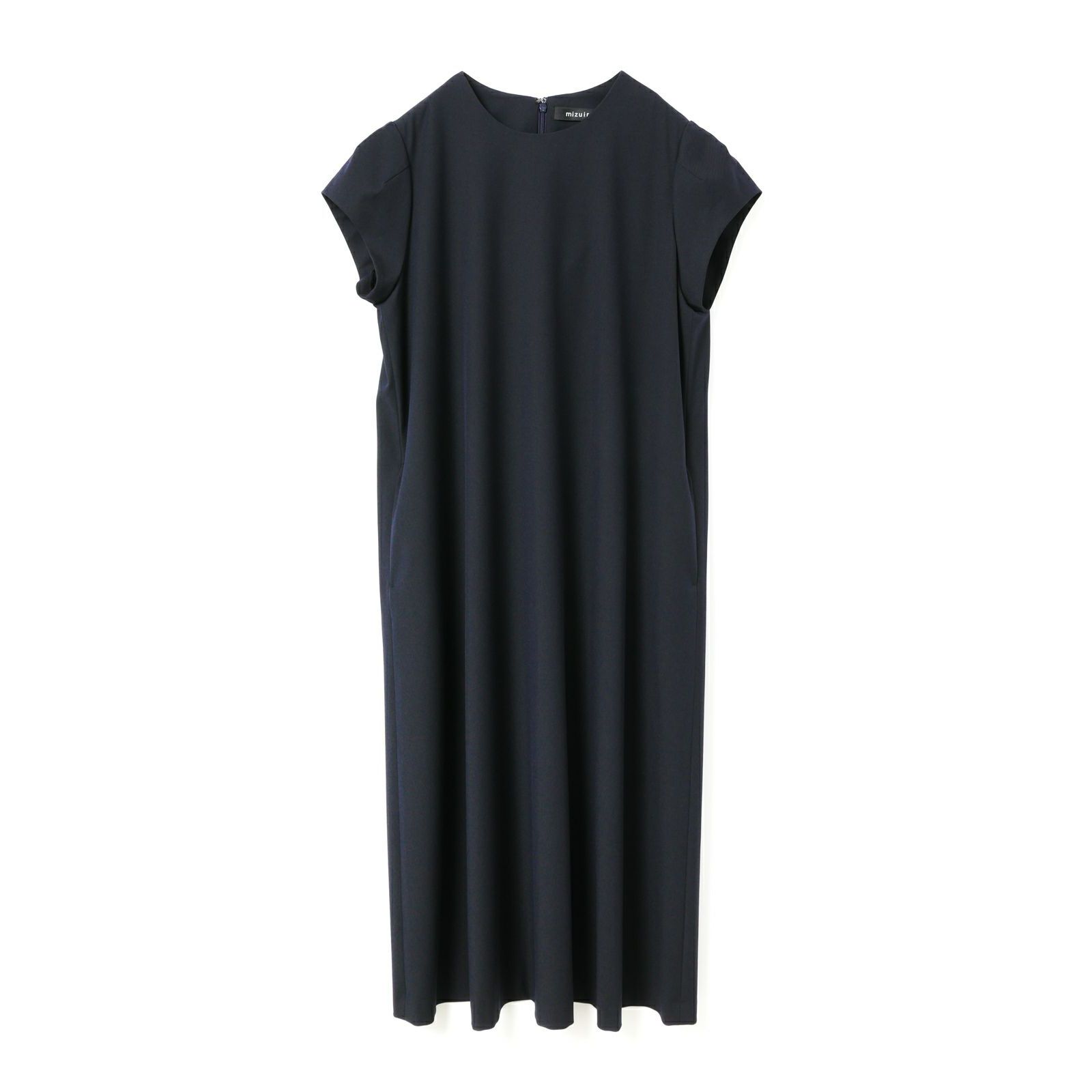 小物しだいでカジュアルにもフォーマルにも着られ、一枚あると重宝するワンピースに新色ネイビーが登場。ダブルクロスのしわになりにくい生地を使用し、着心地はなめらかだ。レギンスや細身パンツとも好相性。ワイドなコクーンシルエットをきりっと引き締める、ほどよいあき具合のクルーネックが上品な印象。