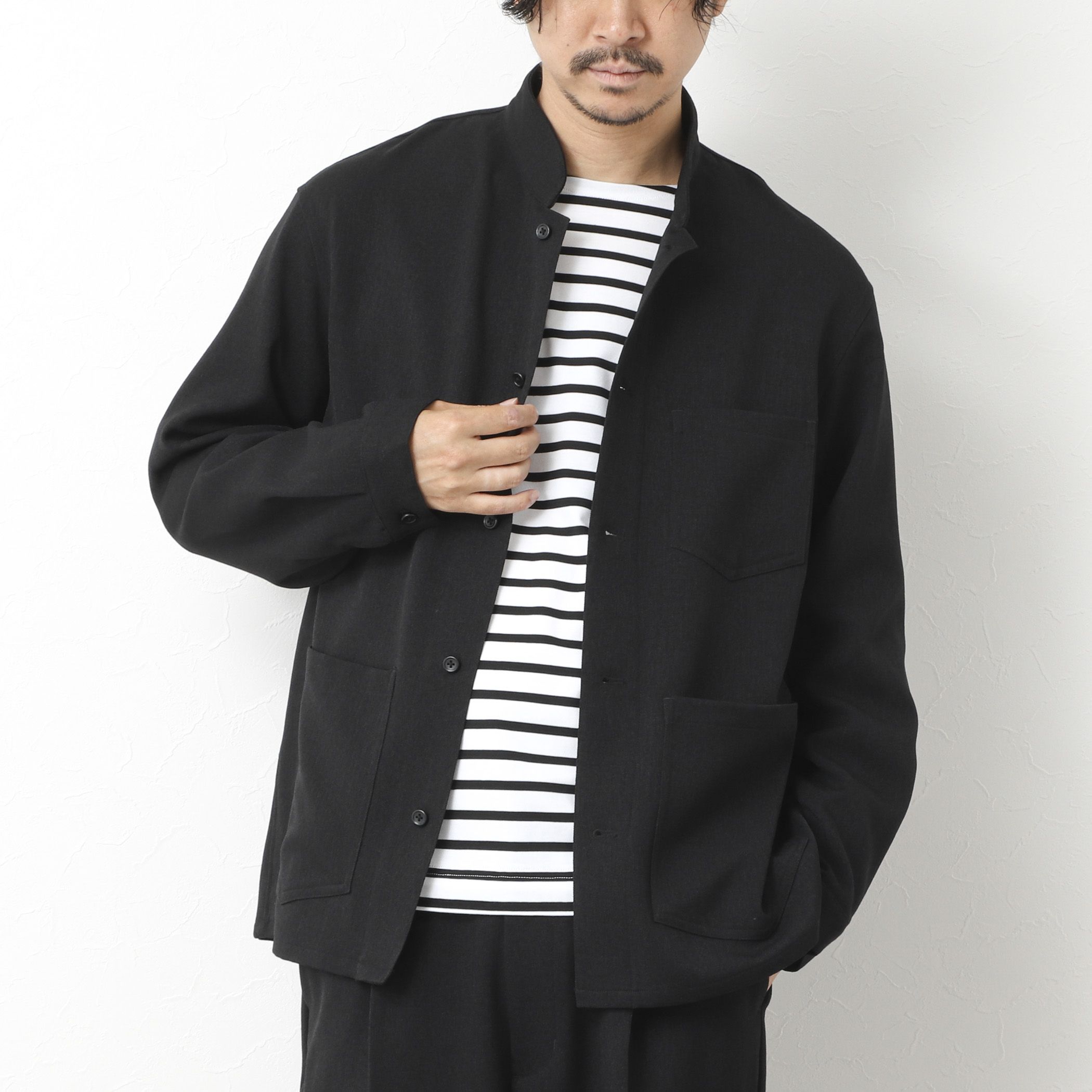 新鮮なのに違和感なく着こなせるウール調マオカラーシャツブルゾン◆素材・ウール調機能素材「LANATEC/ラナテック」膨らみがあり、ウールの糸を模倣したやや肉厚のストレッチメランジツイル。梳毛の様な反発感のある風合いと梳毛の様なざっくりとした表情がありながら、洗濯をしてもシワになりにくくお手入れ簡単。ふんわりやわらかな風合いも変化が少なく長持ちします。・ソフトタッチ/ナチュラルストレッチ/抗ピリング◆デザイン・カジュアルに落とし込んだマオカラー・首周りをスッキリと見せ、きちんと感も・ワークテイストなパッチポケットを配置・「シャツ以上ブルゾン未満」の軽い仕立て◆スタイリング・・・単品使いはもちろん同素材のパンツ(5-0086-5-59-601)とのセットアップもー・ー・ー・ー・ー・ー・ー・ー・ー・ー・ー透け感:なし裏地:なし伸縮性:あり光沢感:ややあり生地の厚さ:普通ー・ー・ー・ー・ー・ー・ー・ー・ー・ー・ー★気になるアイテムは【お気に入り登録】がオススメです!入荷情報やクーポン、セール情報が通知されるようになります。【お取扱い上のご注意】末永くご愛用頂くために、アテンションタグを必ずご確認の上、着用又はお取り扱い下さい。※店頭及び屋外での撮影画像は、光の当たり具合で色味が違って見える場合があります。商品の色味は、スタジオ撮影の画像をご参照下さい。※商品画像に関しては出来る限り忠実に表示出来るよう努めておりますが、お客様がご利用のモニターの設定及び特性により、実際の商品と比較し色味に若干の誤差が生じる場合があります。※画像の商品はサンプルとなりますので実際の商品と仕様、加工、サイズが若干異なる場合がございます。※製品洗い加工の商品は、多少の歪み、シワなどが見られたり、風合いやサイズ等が1枚1枚異なります。汗や雨等で濡れた時や、摩擦により色落ちし、他の衣料を汚すことがありますので(特に濃色のもの)ご注意ください。
