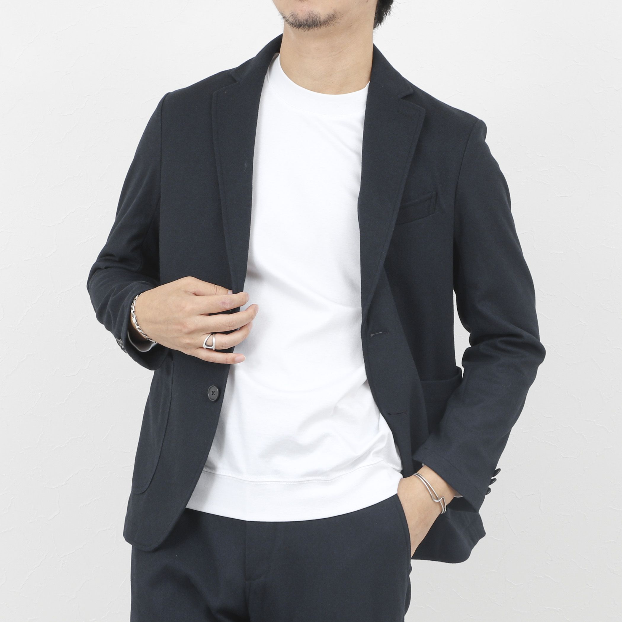 ◆素材・適度な肉感とハリのあるポンチジャージ素材・ストレッチ性/キックバック性・上品な程よい光沢感◆デザイン・やや細身のスタイリッシュなシルエット・チーフポケット内布を引っ張り出すとチーフ代わりに・フロント2つボタン/裏地無し/センターベント/開き見せボタン3つ◆スタイリング・カジュアルシーンからビジネスシーンまで着用可能・シャツはもちろん、Tシャツやポロシャツとの合わせも・単品使いはもちろん同素材のパンツ(5-0086-5-59-401)とのセットアップもー・ー・ー・ー・ー・ー・ー・ー・ー・ー・ー透け感:なし裏地:なし伸縮性:あり光沢感:ややあり生地の厚さ:普通ー・ー・ー・ー・ー・ー・ー・ー・ー・ー・ー※この製品は縫製後、製品洗いをしています。そのため多少の歪み、シワなどが見られたり、風合いやサイズ等が1枚1枚異なります。汗や雨等で濡れた時や、摩擦により色落ちし、他の衣料を汚すことがありますので(特に濃色のもの)ご注意ください。★気になるアイテムは【お気に入り登録】がオススメです!入荷情報やクーポン、セール情報が通知されるようになります。【お取扱い上のご注意】末永くご愛用頂くために、アテンションタグを必ずご確認の上、着用又はお取り扱い下さい。※店頭及び屋外での撮影画像は、光の当たり具合で色味が違って見える場合があります。商品の色味は、スタジオ撮影の画像をご参照下さい。※商品画像に関しては出来る限り忠実に表示出来るよう努めておりますが、お客様がご利用のモニターの設定及び特性により、実際の商品と比較し色味に若干の誤差が生じる場合があります。※画像の商品はサンプルとなりますので実際の商品と仕様、加工、サイズが若干異なる場合がございます。※製品洗い加工の商品は、多少の歪み、シワなどが見られたり、風合いやサイズ等が1枚1枚異なります。汗や雨等で濡れた時や、摩擦により色落ちし、他の衣料を汚すことがありますので(特に濃色のもの)ご注意ください。