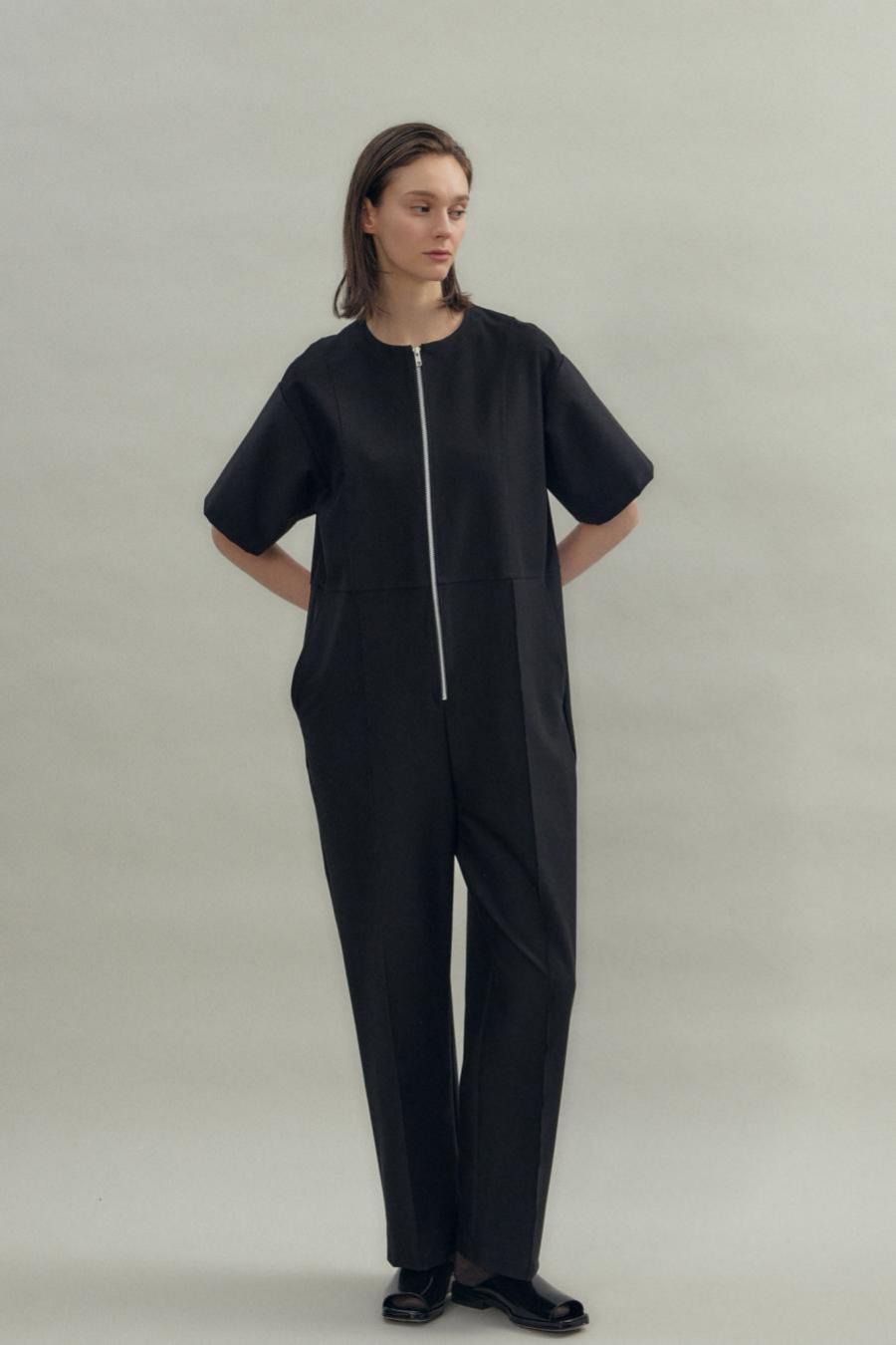 シームラインやフロントジップが旬ムードを約束するジャンプスーツ。ストレッチ性に優れた生地なので着心地もよく、洗濯機でも洗えるのも夏場にはうれしい。着用時に差がつくモードな仕立てで、ボデイラインをほっそり見せる効果も。