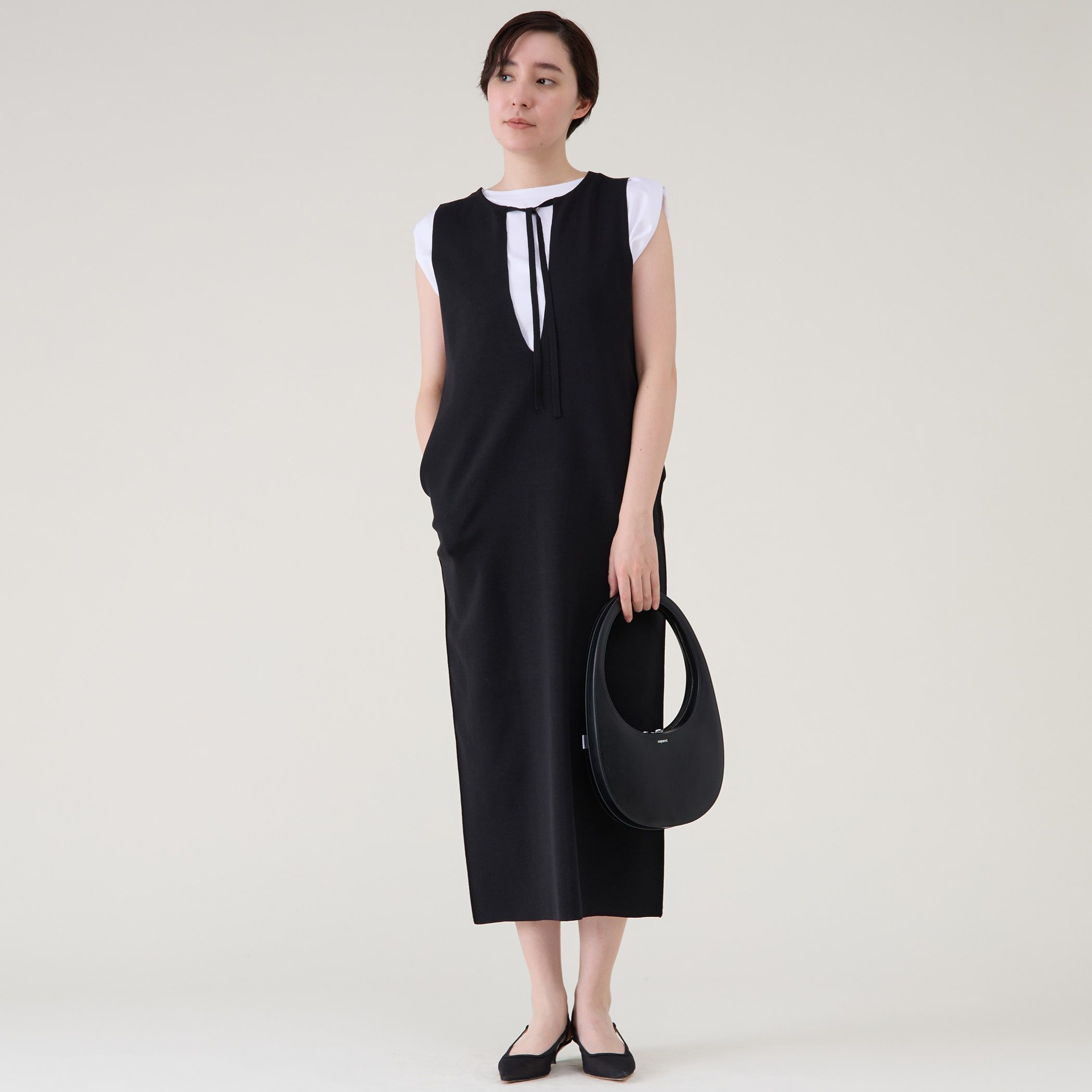 深Vネックと体をすらりと見せるIラインが美しいサロペットスカートは、端正なネイビーとLEE別注グレーの2色展開。リサイクルポリエステルを使った先染め2wayストレッチ素材を使用しているため、動きやすく、シワになりにくいのが最大の魅力。外勤の方にも、座っている時間が長いデスクワークの方にもおすすめです。フロントには目を引くパイピングポケット、前裾にはスリット入り。【IENAの「&NAVY」とは?】IENAのニュートラルカラーである「ネイビー」をベースに、大人のTPOに合わせたアイテムを提案するシリーズ。入園・入学などのセレモニーから家族の集まり、通勤まで、あらゆるきちんとシーンで頼りになる服が揃います。