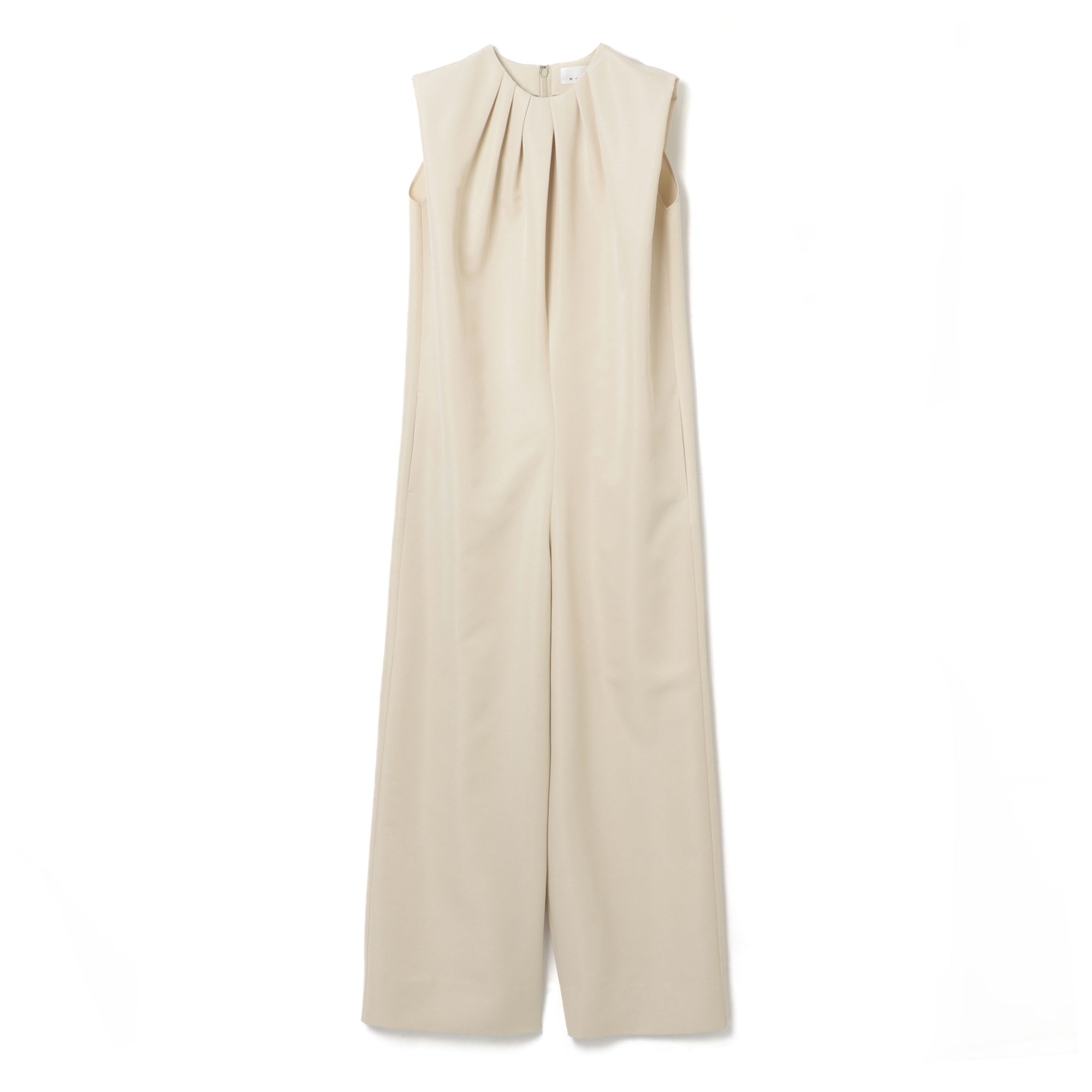 体のラインを拾いにくいゆとりのあるストレートシルエットをベースに、ハリのある素材や胸もとのタックなど立体的に見えるフォルムにもこだわったオールインワン。ノースリーブの肩先を少し落とすことで二の腕も細見えに。 M7daysってどんなブランド?