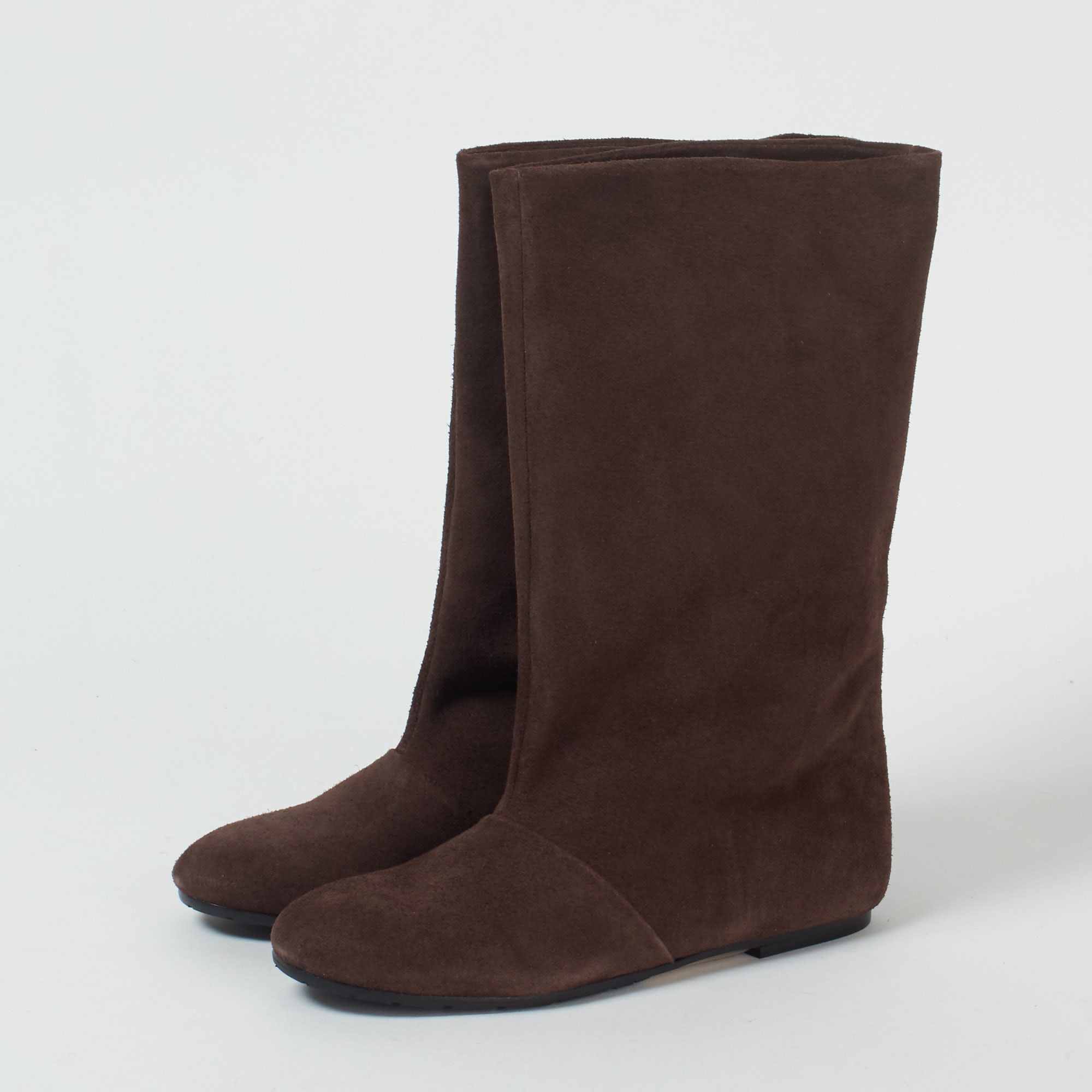 ふくらはぎにかかるくらいのミドル丈ブーツ。スカートはもちろん、ワイドパンツや冬のショーツスタイルにも相性の良い絶妙なバランスです。ややとがったアーモンドトゥは、足先を美しく演出します。