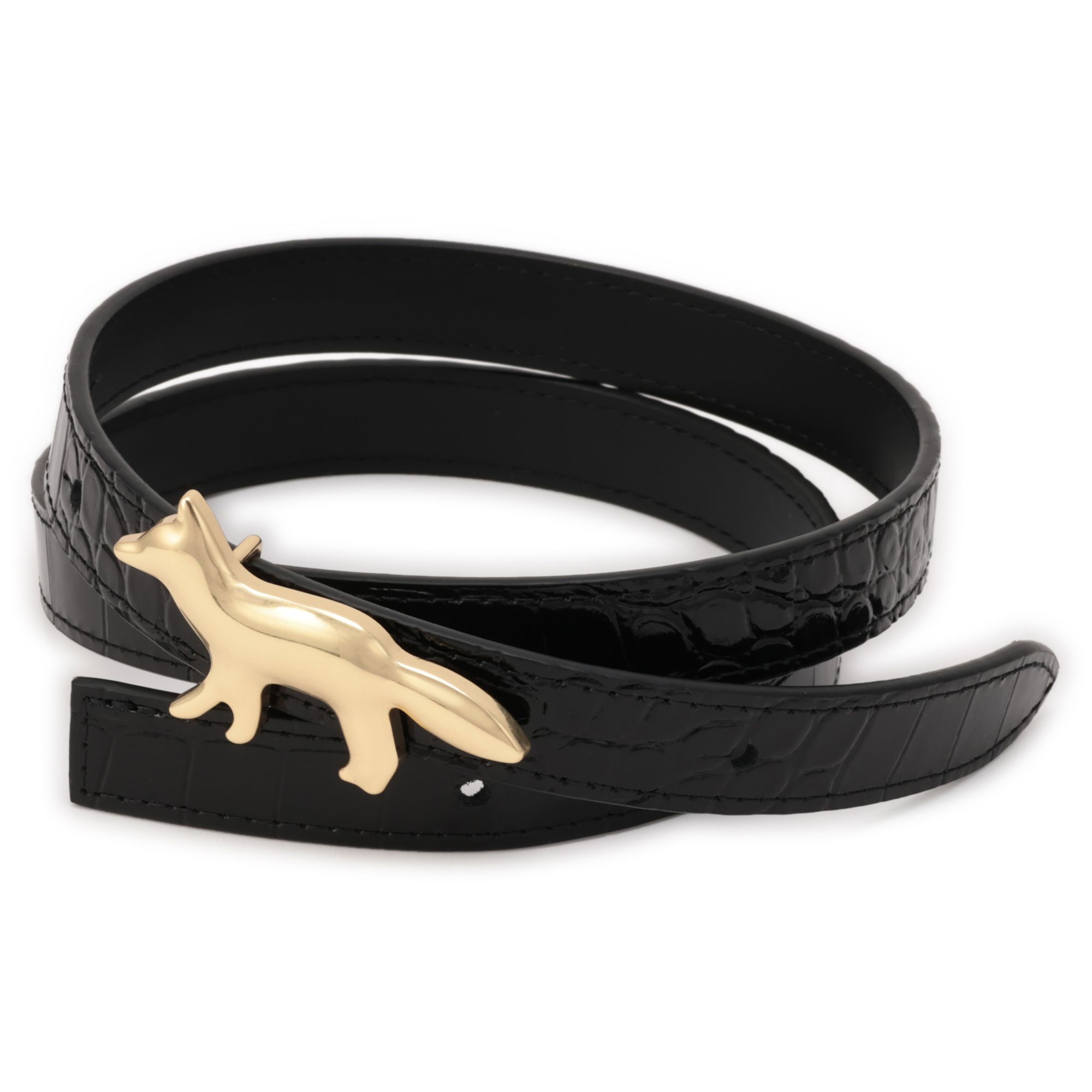 クロコダイルの型押しが上品な落ち着きも与えてくれる、細ベルト。メゾンのアイコンでもあるゴールドフォックスがインパクトを発揮し、周囲の視線も独占。様々なスタイリングに取り入れやすく、マットゴールドの煌めきもスタイリッシュです。