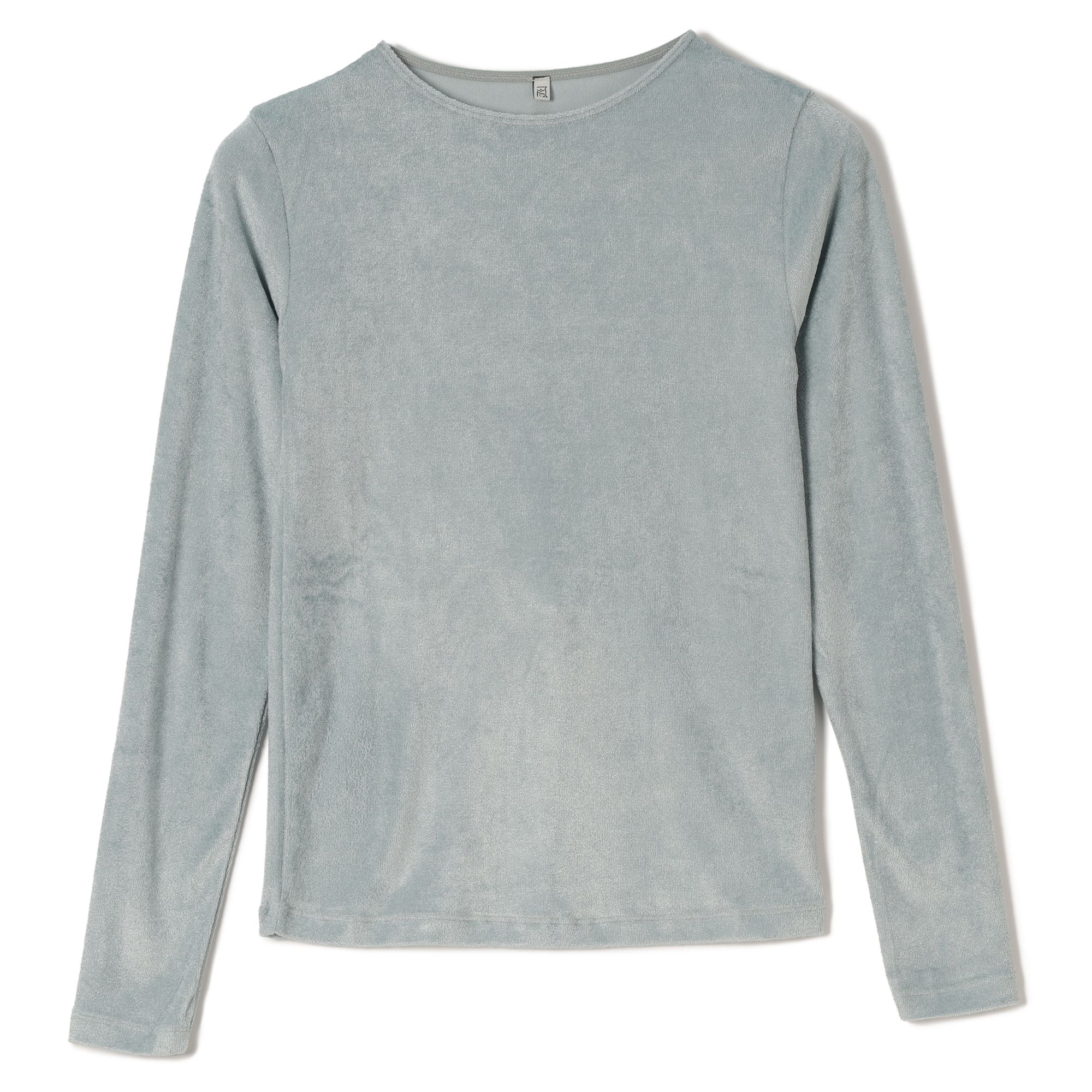 カジュアルにもモードにも合わせやすい「エコベロベロ「生地のロングTシャツ。ベロアのような艶めきが顔まわりを華やげ、女度アップも間違いなし。フィットしつつも窮屈感がなく、リラクシーなムードも高めてくれる一枚です。
