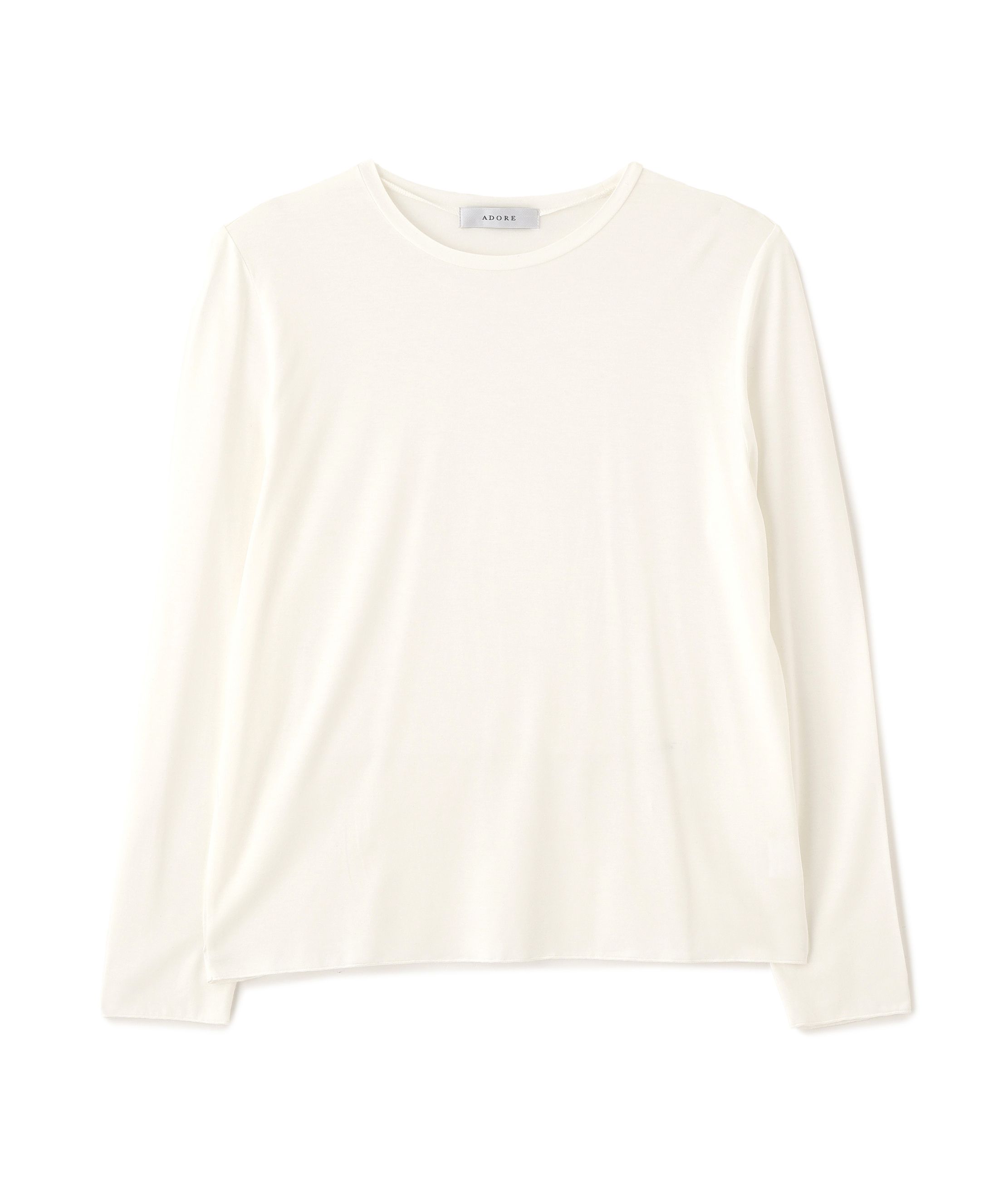 ADOREの定番。シアージャージーカットソー24SSシーズンも人気となったシアージャージーカットソーが新シルエットで登場。襟ぐりの高さを少し低めに設定しています。手洗いも可能でイージーにご着用いただけます。軽く透け感があり、スッキリと適度な張り感が特徴なトリコット(経編)素材で仕立てました。※この商品は、ブラック / ホワイト / ブルー の3色展開となります。【商品特性】透け感:あり裏地:なし 伸縮性:あり 生地の厚さ:薄めフィット感:普通おすすめ着用期間:春夏秋おすすめ着用シーン:万能透け感/ややあり|裏地/なし|光沢/なし|生地の厚さ/普通|伸縮性/ややあり|シルエット/スタンダード
