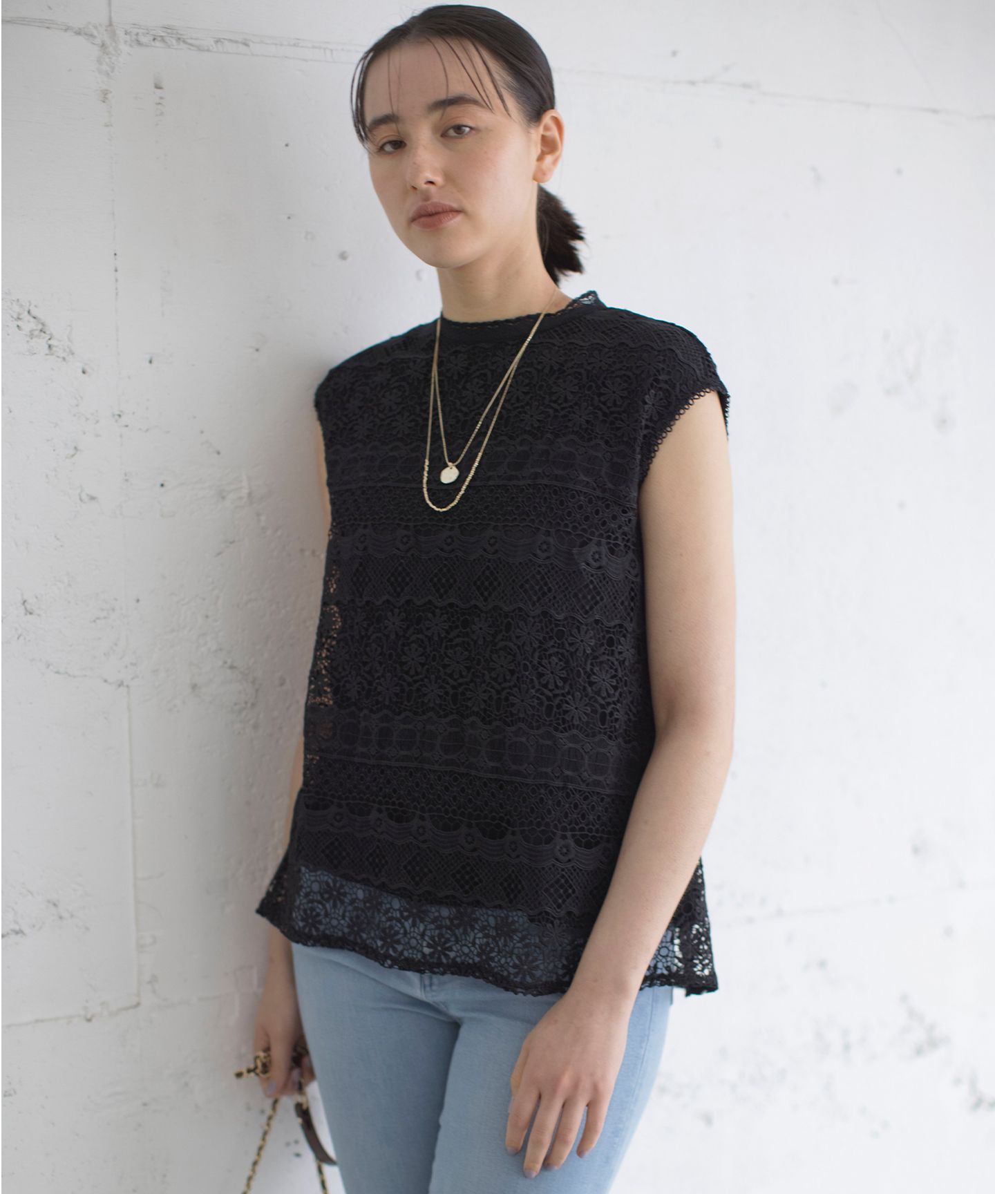 イージーケアが嬉しい!上品な総レースブラウス■デザイン・襟元にレーステープをハイネックであしらった総レースブラウス。・身頃にはジャージ―の裏地、袖ぐりはレーステープをあしらった仕様に。・二の腕もカバーしてくれるフレンチスリーブブラウス。■素材・ポリエステルの糸を使用した、ケミカルレース。・基布が見えず、刺繍糸だけで模様が構成されているのが特徴。・組曲オリジナルの幾何や花柄を組み合わせたボーダー柄。【スタッフコメント】▼身長158cm|着用サイズ2 (通常着用サイズM)繊細なレースながらイージーケアな拘りの詰まったの映えブラウス。襟元やそでぐりまでレースがあしらわれており上品な印象を与えてくれます。オンオフ問わず使える万能さもポイントです!============================洗濯方法:マシンウォッシャブル裏地:あり伸縮性:ややあり============================【注意事項】※撮影時の照明の関係により、色味が若干異なって見える場合がございます。商品の色味はハンガー吊り画像をご参照ください。※画像はサンプルを使用しているため、実際にお届けする商品と色味やサイズ等の仕様に変更がある場合がございます。▼気になるアイテムは『お気に入り登録』がおすすめ▼お好きなカラー&サイズを選んで?マークをクリック!再入荷通知や、ラスト1点の通知、セールの通知も受け取ることができます。