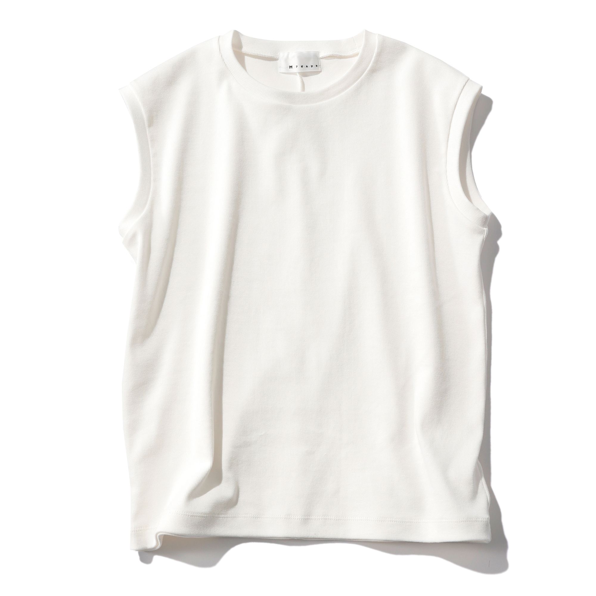 襟ぐりや袖のリブがワンポイントとなり、シンプルでも様になるデザイン。ほどよく地厚でラインを拾いにくく一枚でも着やすいので、夏の定番としてまとめ買いする人も多数。上質な超長綿ならではのなめらかな風合いは、一度着たらやみつきになるほどの心地よさ。肩幅を大きめに設計することで、肩まわりが華奢に&二の腕もすっきり見えると大ヒット中の一枚。「ノースリは苦手だったけど、これなら着られる」という声も続出![デザイン]しっかりとした伸縮性と程よい厚みで体のラインをきれいに見せてくれるこだわりのベアテレコのノースリーブ。 肩幅のサイズ感をやや大きめにすることで肩のラインがきれいに見えるように工夫しています。 光沢の美しい超長綿を使い毛羽が少ない上質な糸を使用し抜群のふくらみ感と、風合いの良さを実現させた素材できれいめ大人カジュアルにおすすめです。 一枚でももちろん、ジャケットやシャツのインナーにも![素材]光沢の美しい超長綿を使い毛羽が少ない上質な糸を使用しています。編んだ後、開反せずにそのまま仕上げる「丸仕上げ」という特殊な仕上げ方にしており、生地に余分なストレスを与えず、リラックスした状態で生地が仕上がります。そのため抜群のふくらみ感と、風合いの良さを実現させています。1枚でも透けず、厚すぎない絶妙な厚さもポイントです。M7daysってどんなブランド?【Akaneの40代・コスパコーデ術#27】でも紹介 >