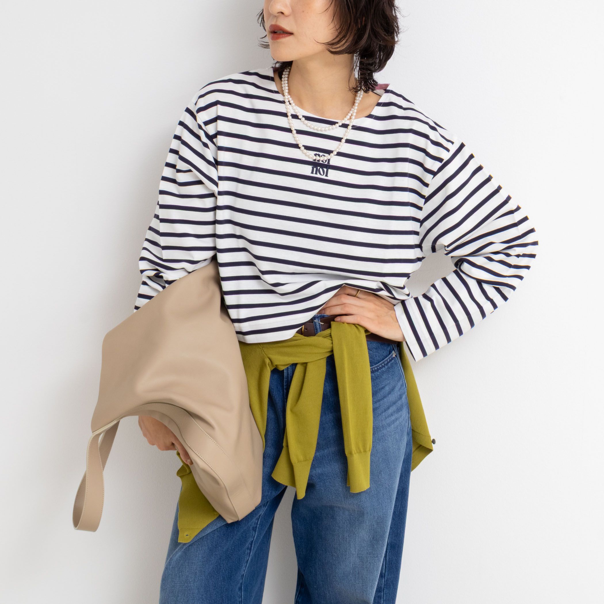 NOLLEY'S【nolnol/ノルノル】◆Point・NOLLEYS GOODSで大人気の「nolnol/ノルノル」シリーズからボーダーカットソーが登場!・nolnolロゴが胸元に刺繍された大人可愛い1枚・ショート丈×ゆったりリラックス感のあるシルエットがポイント・程よく太め、長めの袖もこなれ感をプラス・大人カジュアルコーデに取り入れたいおすすめアイテム・同シリーズのロング丈Ver.(5-0035-5-03-731)もあり・素材…「MVS(ムラタ・ボルッテクススピナー)」とは、村田機械株式会社で製造される、日本では珍しい特殊な紡績の機械の名前。その特殊構造で作った糸をボルテックス糸と呼び、この糸を使用した上質な天竺※0015:(ホワイト系その他2)・・・白×ネイビーボーダー※0016:(ホワイト系その他3)・・・白×黒ボーダー【nolnol(ノルノル)】NOLLEYS GOODSの新ライン。ノーリーズの頭文字をリズムよく組み合わせたネーミング。NOLLEYSの中の可愛い!が詰まったプレッピーテイストのNEWラインです。●お取扱い上のご注意●末永くご愛用頂くために、アテンションタグを必ずご確認の上、着用又はお取り扱い下さい。気になる商品は、お気に入り登録がオススメです!クーポン情報、入荷情報が、通知されるようになります。※手洗い可※店頭及び屋外での撮影画像は、光の当たり具合で色味が違って見える場合があります。商品の色味は、スタジオ撮影の画像をご参照下さい。※商品画像に関しては出来る限り忠実に表示出来るよう努めておりますが、お客様がご利用のモニターの設定及び特性により、実際の商品と比較し色味に若干の誤差が生じる場合があります。※画像の商品はサンプルとなりますので実際の商品と仕様、加工、サイズが若干異なる場合がございます。