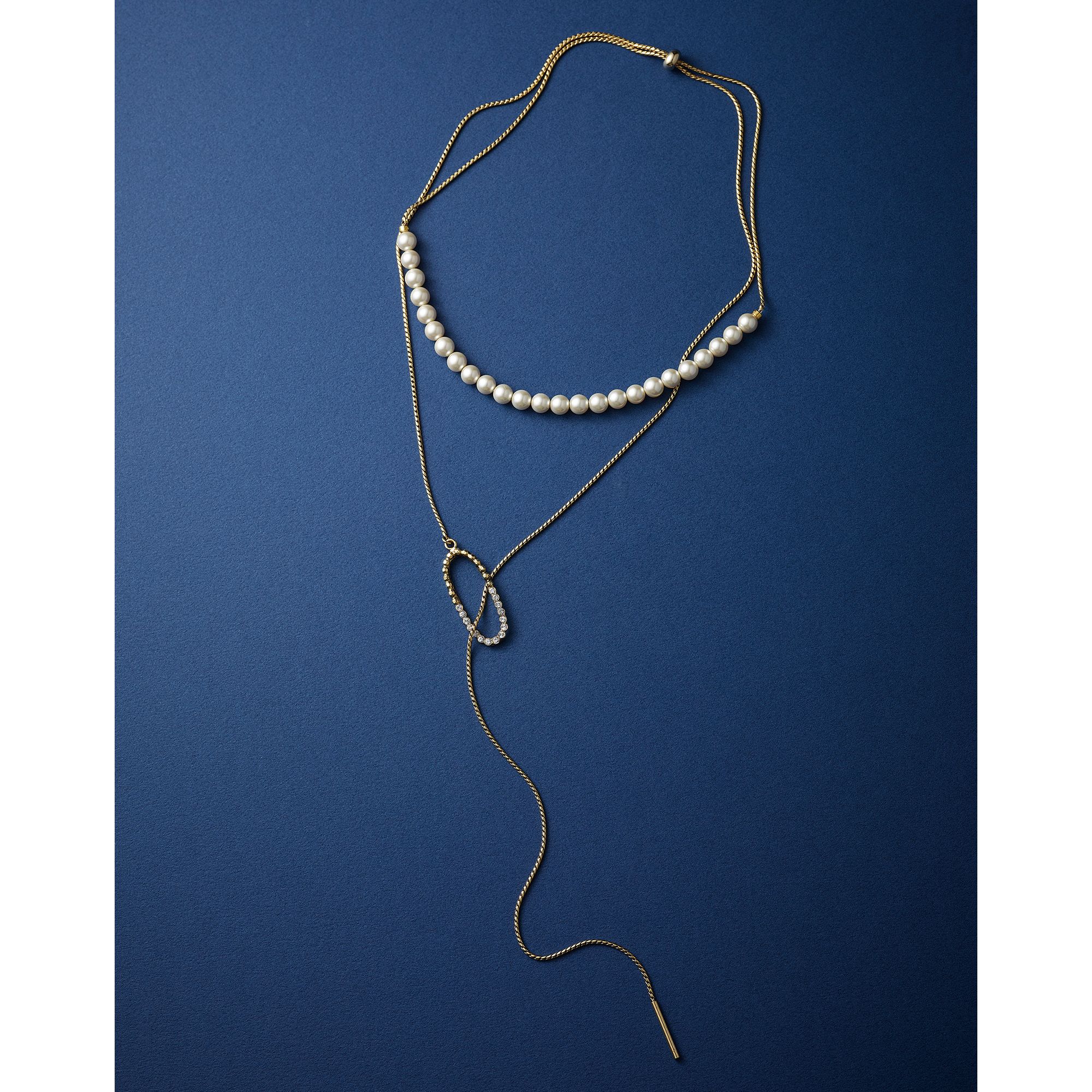 デコルテに華を添えるリズミカルに並んだ白蝶パール大小の白蝶バロックパールをリズミカルに配し、K18イエローゴールドでていねいに仕立てたロングネックレス。小粒なバロックパールの中に、ひときわ存在感を放つ表情豊かな大粒バロックパールが、華やかなアクセントに。フォーマルシーンにはもちろん、ほどよい抜け感もあるので、リラックスしたスタイリングにも好相性だ。大小のパールが表情豊かに連なる。ショートネックレスとのレイヤードも楽しめる絶妙な長さ