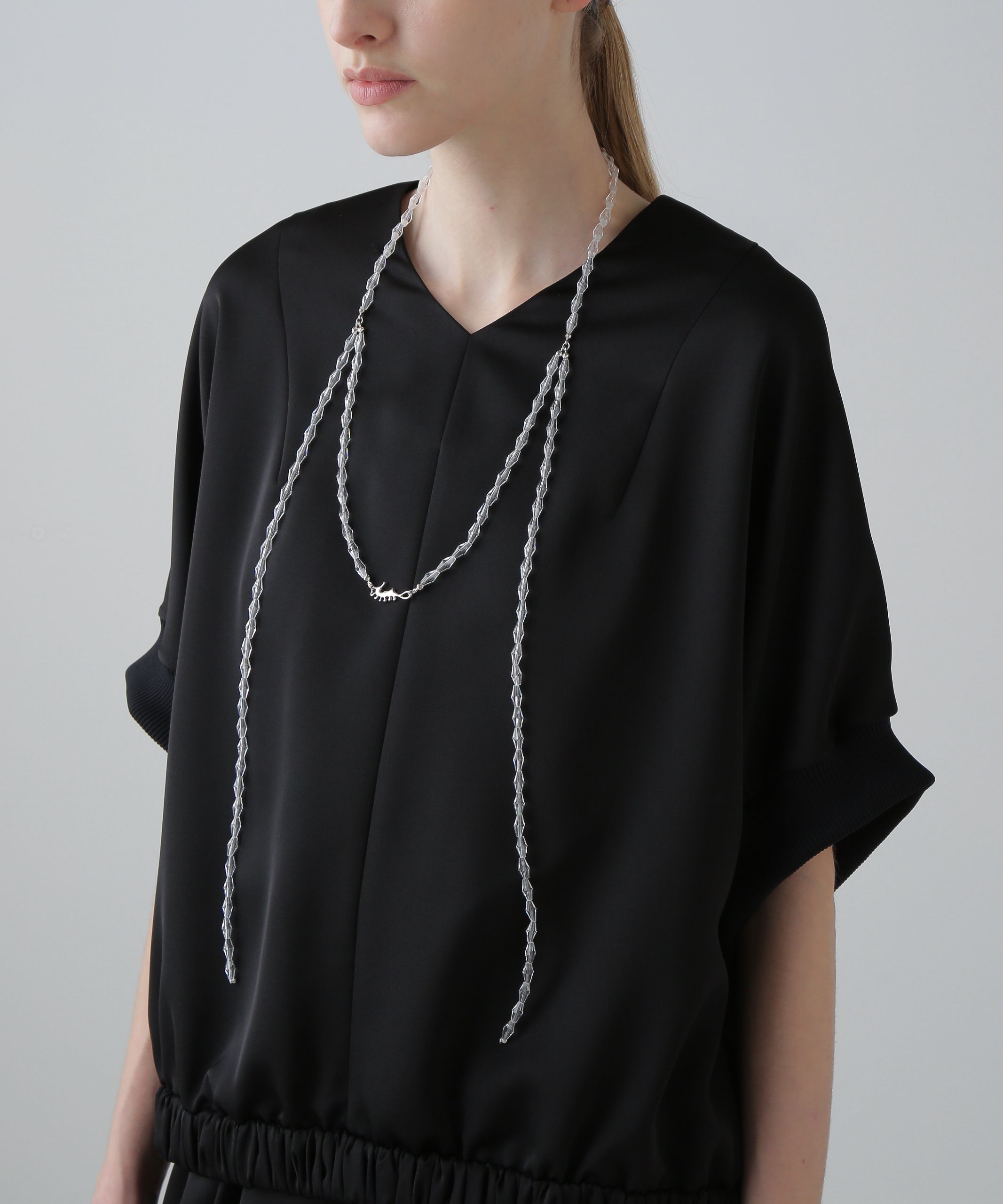 立体的なチェーンが複雑な輝きを放つネックレスは、ひとつ胸元に飾るだけで洗練された印象に。シンプルなネックレスとの重ね着けもおすすめ。一本のロングネックレスでも、サークル金具をフロントに配してY字ネックレスとして着けるのもお勧めです。全長60cm(アジャスター管なし、T字サークル金具)【MARIHA/マリハ】MARIHAが目指しているのは、自分らしさを大切にしながら毎日でも身に着けることができるタイムレスなデザイン。 日本古来の「花鳥風月」という美意識を大切にしながらひとつひとつの素材やシルエットを丁寧に吟味してミニマルかつ繊細なスタイルを創り上げています。 パリを拠点にインターナショナルに活動するデザイナー Marie Westonが、旅の中で出会った情景からインスピレーションをうけたデザインには、ポジティブなメッセージに溢れたストーリー性のある名前がつけられています。 「美しいものを身に着けることで、心も美しく、幸せで満ち溢れるように。」というデザイナー自身の願いが込められたデザインは、身につける人の魅力を美しく引き立て、心華やぐ時を演出してくれます。