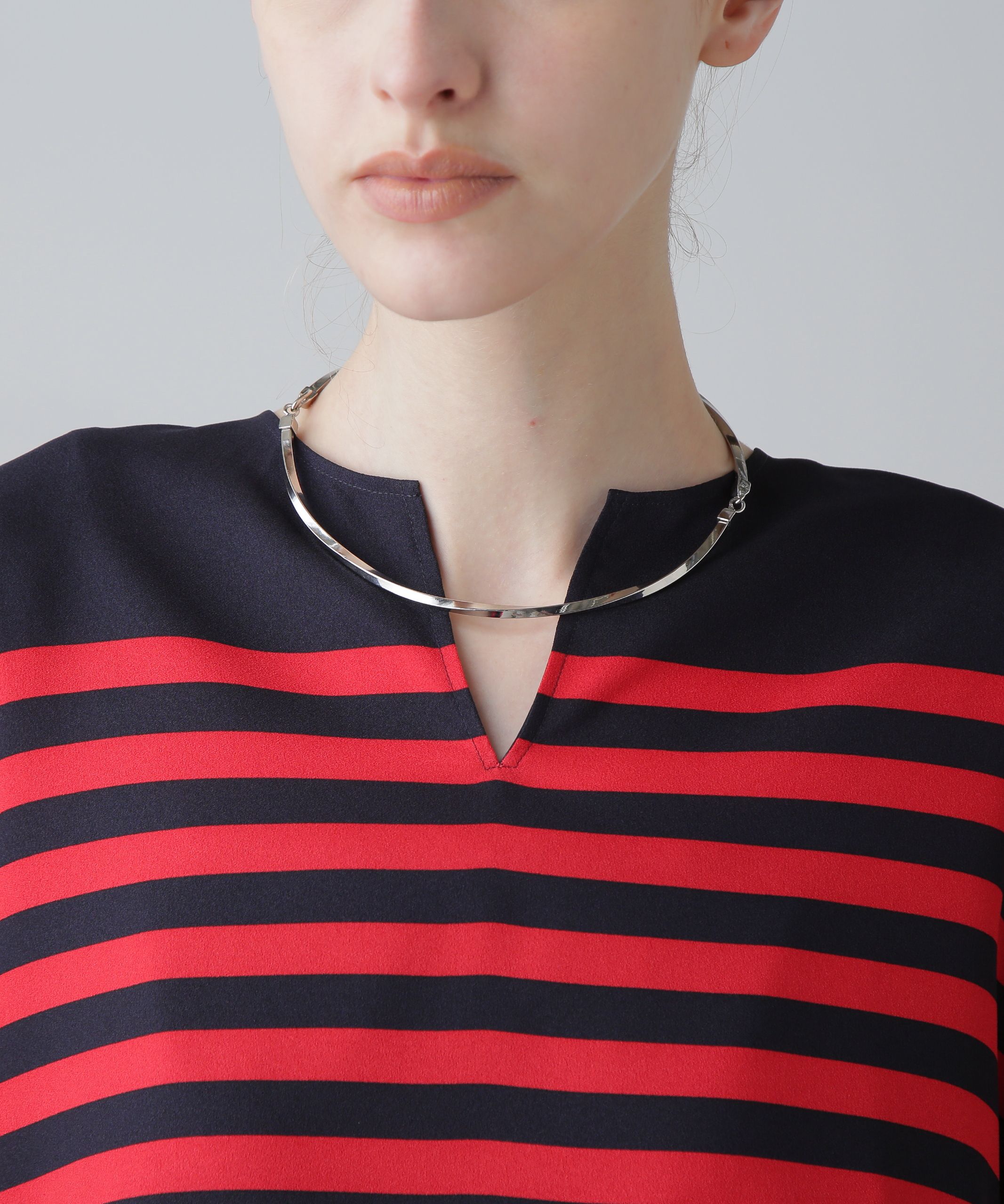 セレクトショップなどで大人気のNY発アクセサリーブランド。エクラ世代の首まわりをきれいに見せる、ベストなボリューム感が好評だった逸品をこの夏、復刻別注! 重厚感のある見た目ながら、軽やかなつけ心地。大小のチェーンを規則的につなげることで立体感が出て、光を上品に反射。Tシャツスタイルを華やかに演出してくれる。