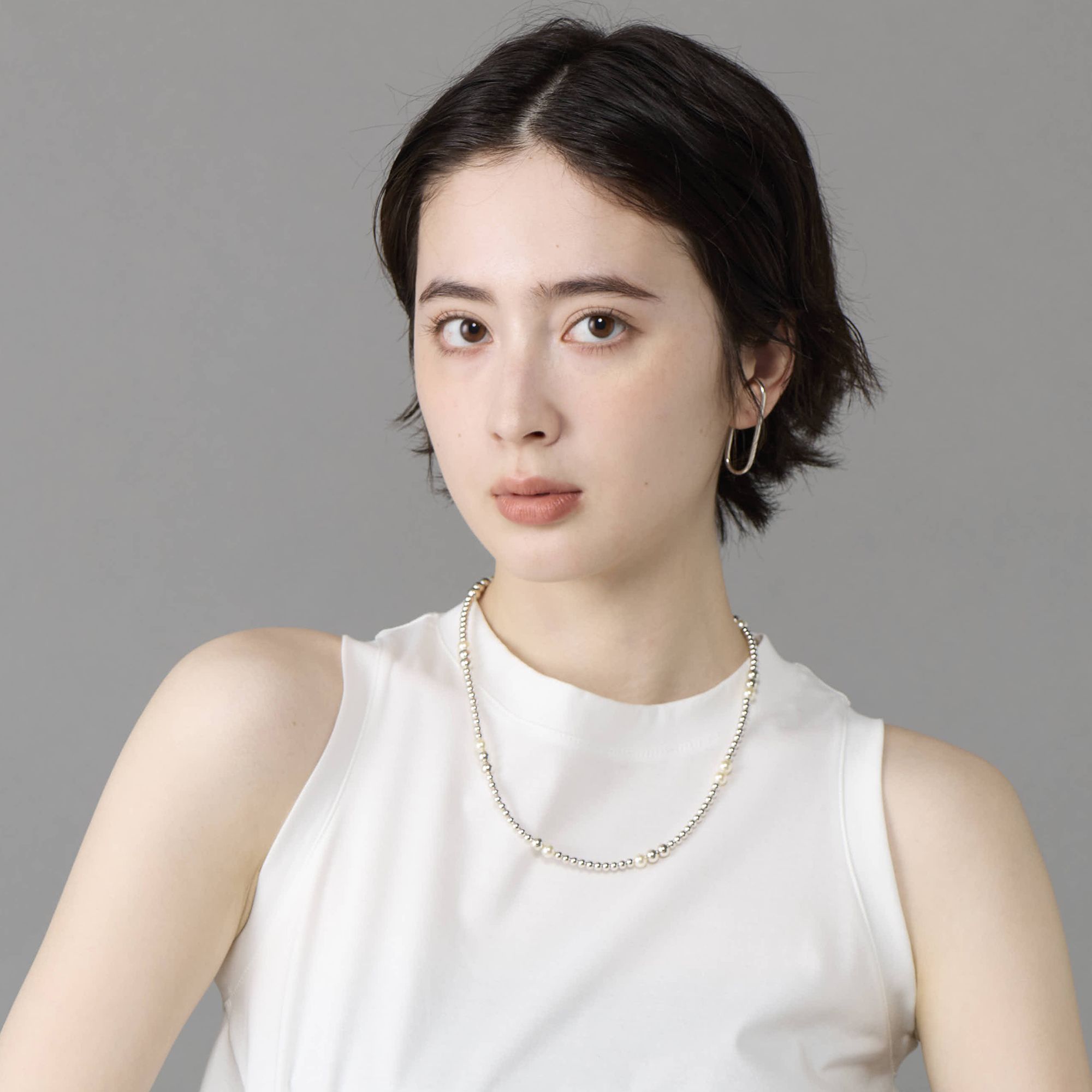 球状ではなくオーバル型のボールを採用しているため、シルバーでも落ち着いた女性らしいムードに。首に沿う使い勝手のいい40cmで、重ねづけにも◎。