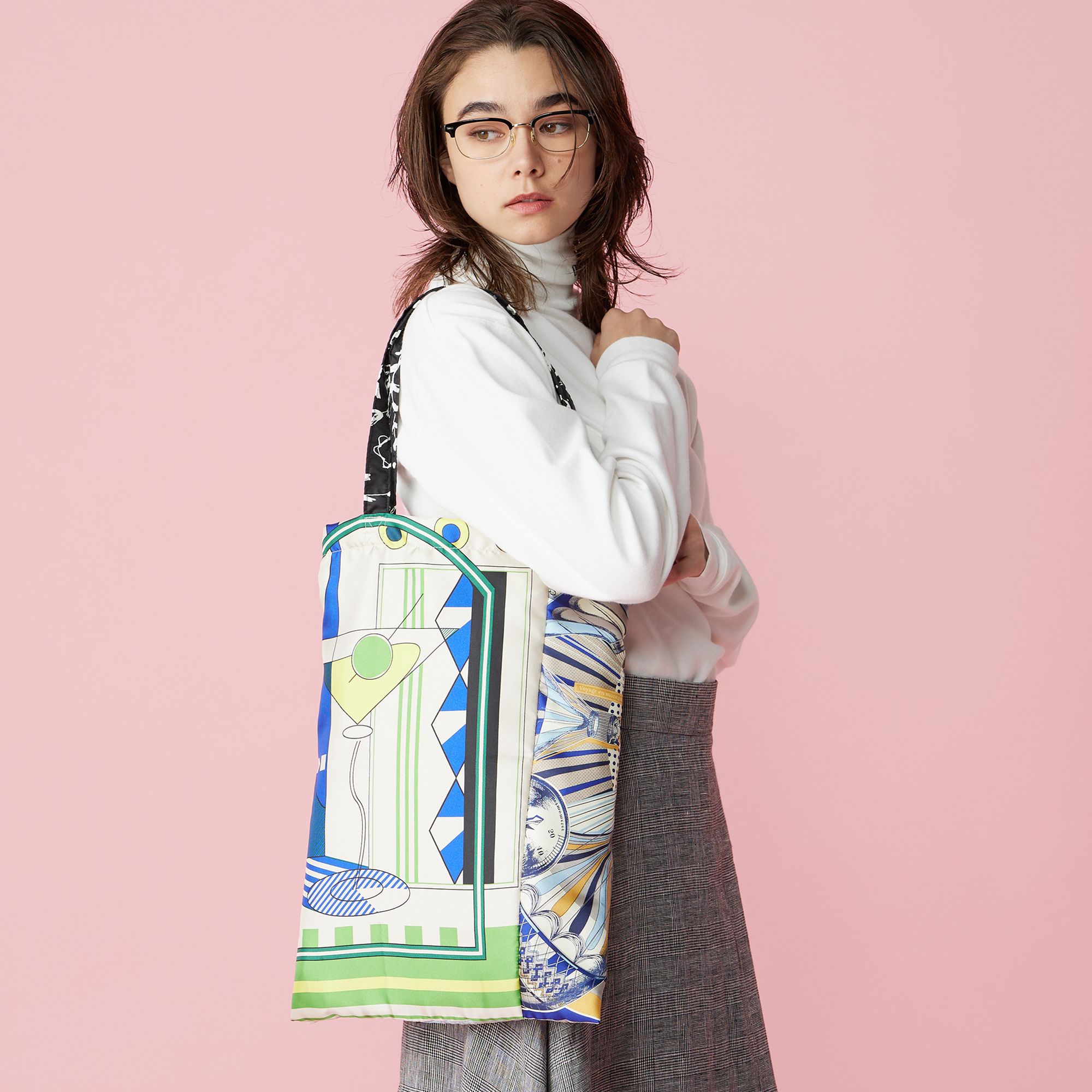 マニプリのプリントを使用した集英社ハピプラの別注トート2つのプリントが見えるように切り替えしていますので、持ち方で柄の出方が変わりますので、柄を楽しむことができます。