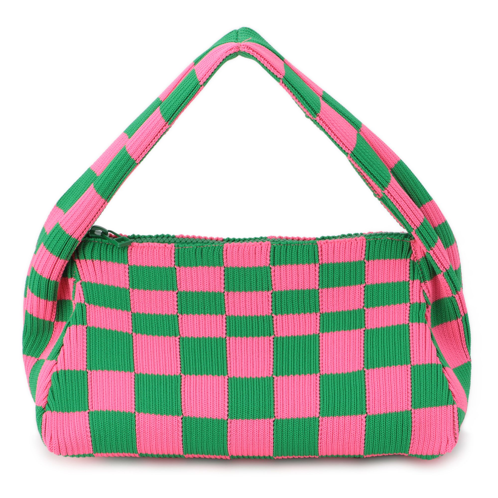 市松模様が晴れやかでスタイリングのアクセントになるマーケットバッグ。シャープな発色でモダンな華やかさがありつつ日本らしい伝統的な独特のムードを放つバッグです。ミニサイズで持ち手が2WAYなのも高ポイント。