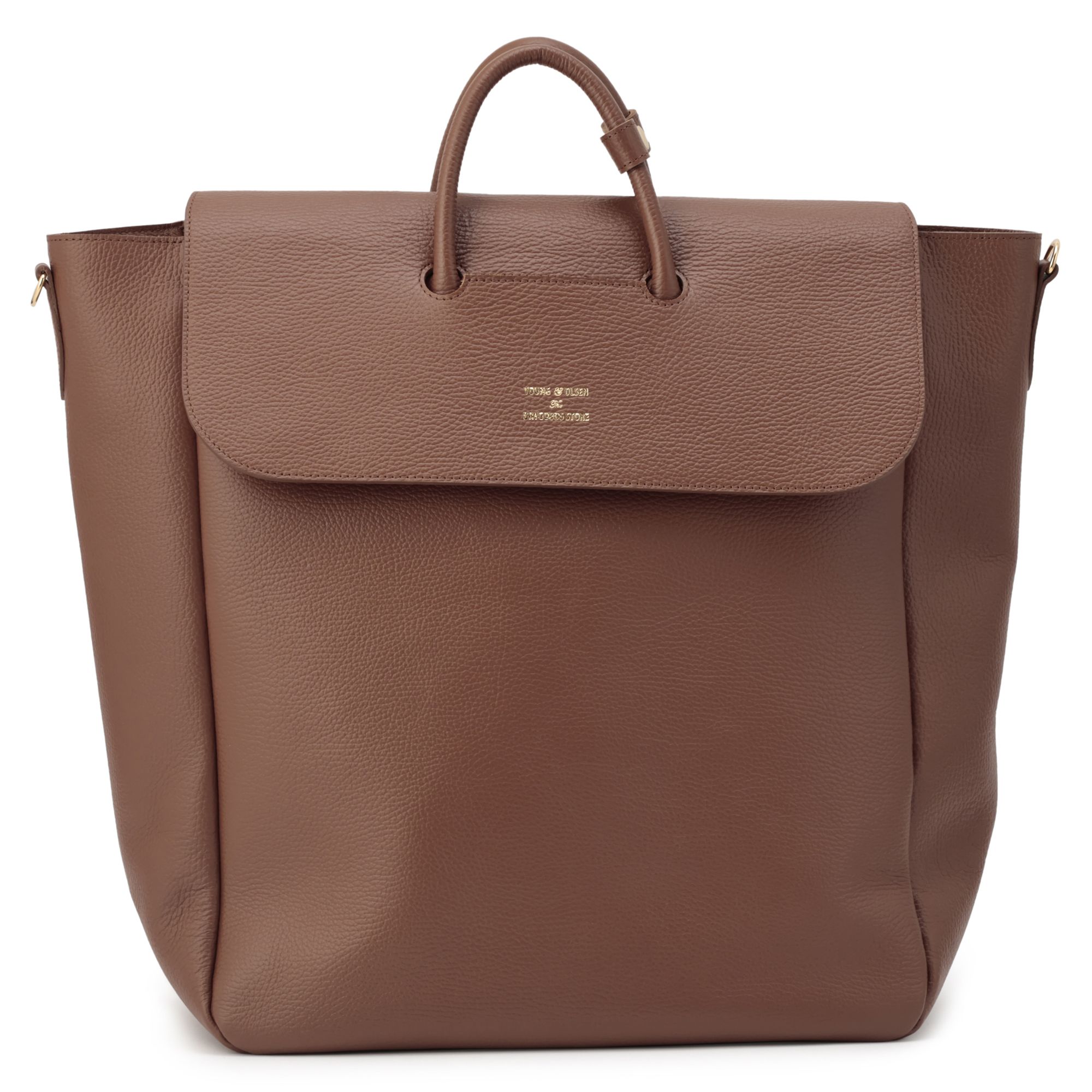 トラッドスタイルをベースにしたマスキュリンなデザインが魅力。ジェンダーレスでいて、トレンドを問わずに長く愛せるアイテムが豊富で、おしゃれプロにもファンが多い。クラフツマンシップを感じる丁寧なテーラリングも特徴。使うほどに味わいを増すレザーと、タイムレスなデザインで愛され続ける名品トート。今季はハピプラストアで大人気だったダスティピンクを復刻別注!ベージュ感覚で持てる落ち着きピンクが、秋冬コーデに大人の甘さを添えてくれます。両サイドにDカンが付いてるので、別売りのショルダーストラップを付けて2WAYで使えるのも優秀!おしゃれプロにも愛用者の多い「YOUNG & OLSEN」のトートバッグ。主張しすぎないシンプルさながら、シボ感のあるレザーや絶妙なカラーがこなれ感たっぷりな印象。ゴールドの箔ロゴがアクセントを効かせ、フェミニンにもマニッシュにも品よく馴染んでくれます。