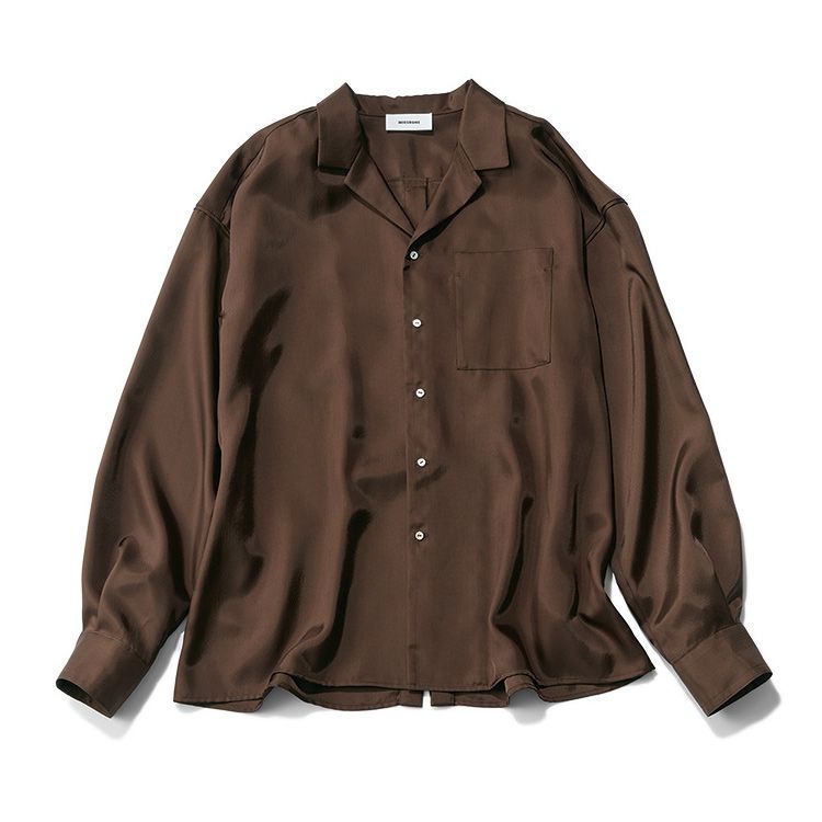 前はシンプルな開襟シャツ、背中には比翼仕立てでボタンをあしらい、あけ具合によって肌見せが調整できるユニークな一着。美しい光沢をもつリサイクルポリエステル素材は、手洗い可能でデイリーケアも簡単。ブラウンはMarisolだけの別注カラー。スタイルアップPoint腰まわりをカバーできるやや長め丈光沢が美しいツイルバックスリットシャツ。リサイクルポリエステル素材を用い、しなやかで着心地の良さが際立ちます。デイリーケアも簡単で使いやすく、開襟デザインで過度にフォーマルにならず普段使いに最適です。背面の比翼仕様で、肌見せも自在に楽しめる遊び心たっぷりの一着。ヒップにかかる丈感が縦のラインを強調し、Iラインシルエットでスタイリッシュさを演出します。さまざまなボトムスと合わせれば、その日の気分に合ったスタイルが完成。モード感を加えることで新たな着こなしが広がります。・洗濯の際はネットを使用してください・他の物と分けて洗ってください・形を整えてから干してください・付属部分にはアイロンをかけないでください・アイロンはあて布を使用してください・摩擦や引っかけにご注意ください