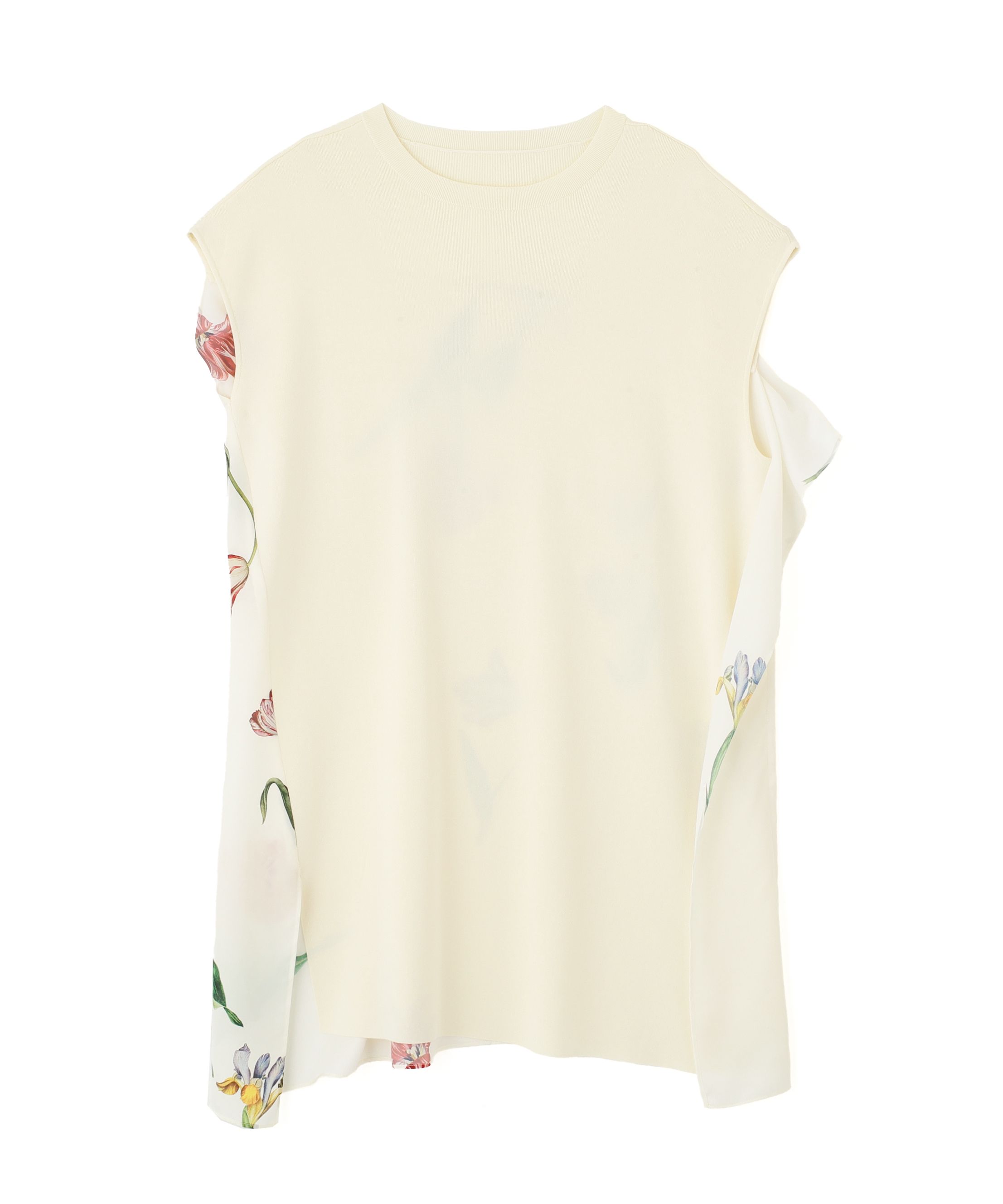 ピクトリカルブックプリントブラウスフロントはニット、後ろ見頃を図鑑から抜き取ったような植物柄を組み合わせたオリジナルのプリント生地で作ったロングトップスです。四角いスカーフをそのまま背中に縫い付けたような仕様。生地が自然に折り返ったり垂れるさまをそのままデザインとして活かしています。同素材パンツ(品番:531-5230813)とのセットアップ着用も可能です。写真のような植物モチーフをプリントした、軽く光沢感のある、しなやかなサテン素材で仕立てました。※この商品は、エクリュのみ の1色展開となります。【商品特性】透け感:ややあり裏地:なし伸縮性:ややあり 生地の厚さ:薄め フィット感:普通おすすめ着用期間:春夏秋おすすめ着用シーン:お出かけ透け感/ややあり|裏地/なし|光沢/ややあり|生地の厚さ/普通|伸縮性/なし|シルエット/スタンダード