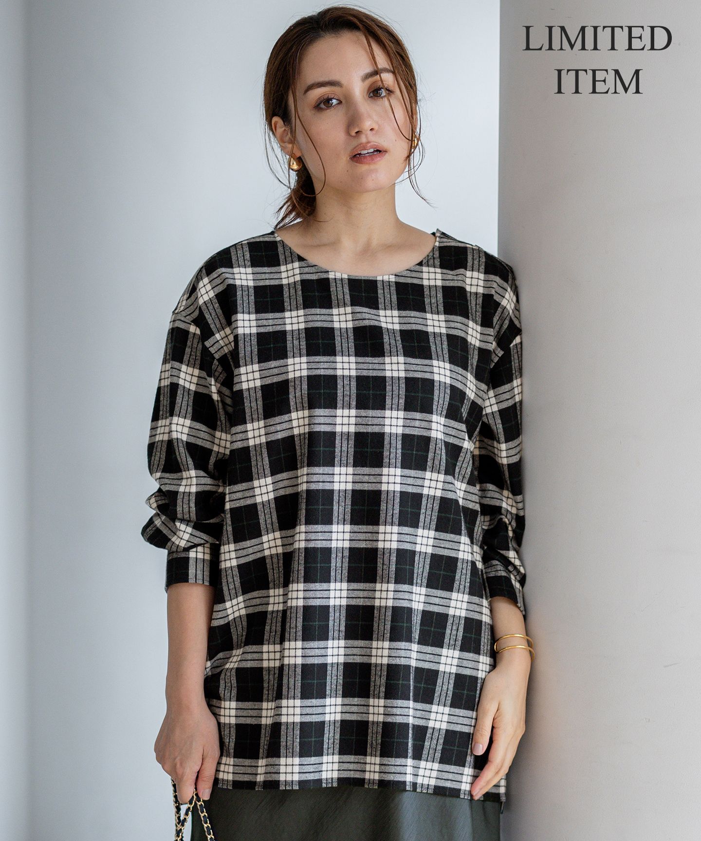 2025 Autumn & Winter【大きいサイズ限定】体型カバーも叶う上品なチェックブラウス。■デザイン大人の女性に寄り添う、ゆったりとしたシルエットのチェックブラウスです。ゆとりのある身幅と前後差のある着丈が、気になる部分をさりげなくカバーし、リラックス感のある着心地をお楽しみいただけます。 肩にあしらわれたボタンが、シンプルなチェック柄に洗練されたアクセントをプラス。視線を上に集めることで、スタイルアップ効果も期待できます。前後差のあるスクエアヘムは、アウトで着てもバランスが良く、ヒップラインをカバーしてくれるのも嬉しいポイントです。 一枚で主役になるのはもちろん、ニットやベストとのレイヤードスタイルでは、裾からちらりと覗かせればこなれた印象に。幅広い着こなしが楽しめる、ワードローブに欠かせない一枚です。カラーは、シックで洗練された印象のモノトーン(#305)、ネイビーやホワイトを組み合わせた華やかなレッド(#310)、落ち着いた雰囲気ながらも、さりげない配色がアクセントになるネイビー(#375)の3色展開です、■素材上質な綿を100%使用。糸を染めてから織り上げる「先染め」ならではの、深みと奥行きのある美しい発色が魅力。さらに、生地の表面に軽く起毛をかける「微起毛加工」を施すことで、ふんわりと滑らかな肌触りに仕上げました。肌に優しく、心地よい着心地です。 伝統的なタータンチェックをベースに、柄の大きさを少しアレンジすることで、クラシックでありながらもモダンな表情を演出しています。軽やかでしなやかな風合いながらも、程よい肉感があり、一枚でも安心して着用いただけます。日常使いから、少しきちんとしたいトラディショナルなスタイリングまで、幅広いシーンで活躍する上質な素材感です。▼同シリーズブラッシュド ビエラチェック シャツ(品番:BLWWGW6425)※画像はサンプルを使用している為、実際にお届けする商品と仕様が異なる場合がございます。