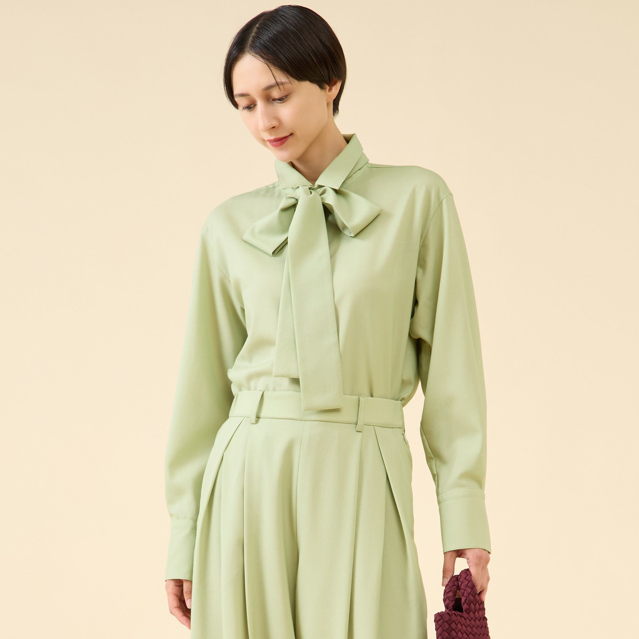 ≪デザインポイント≫ボータイは後ろ中心のループから取り外しも可能です。キレイめな素材感のマニッシュなデザインで秋らしく着こなせるアイテムです。≪素材・着心地≫上質なウールの細番手を使ったトロ。天然素地ならではの自然な落ち感があります。≪おすすめの着こなし≫セットアップではもちろん、ニットやジャケットのインナー等にもこの時期使いやすいアイテムです。
