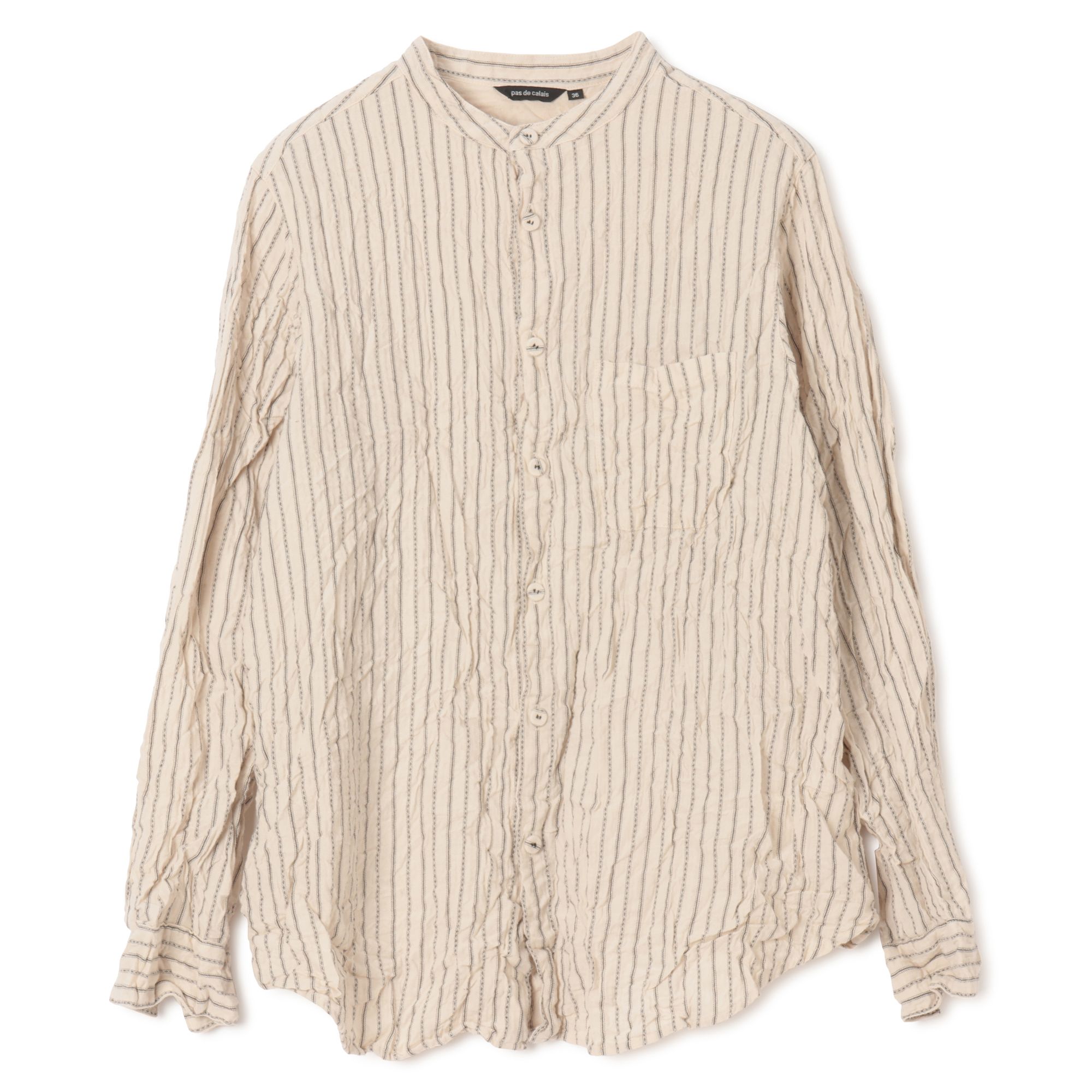 丁寧に織られた綿麻生地で仕立てた、旬カジュアルなブラウス。シャリ感と清涼感のある生地が心地よく、春から秋までのロングシーズン愛用できます。ポイントは、独特のシワ感と極細ストライプ。細めのスタンドカラーも、さりげなくフェミニンです。